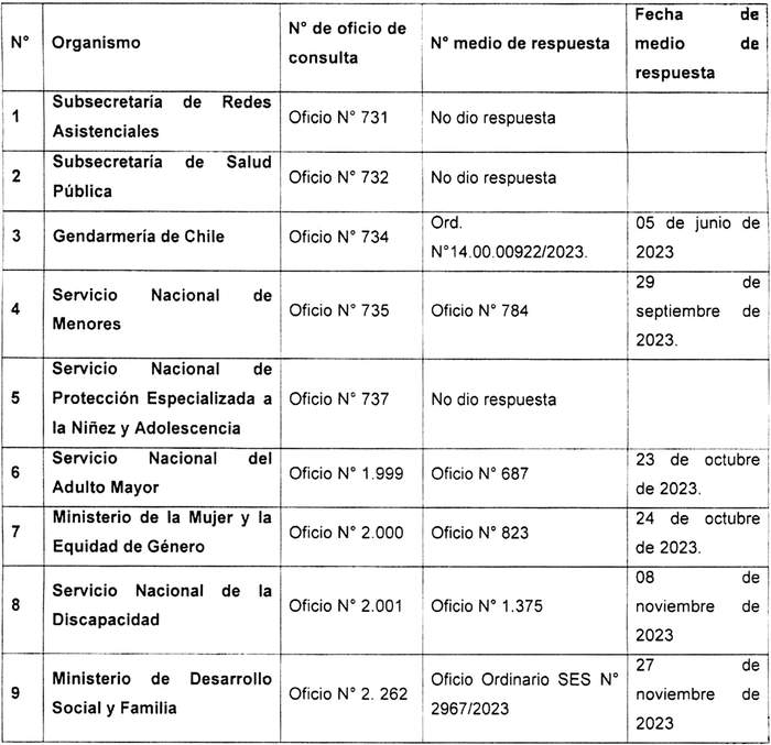 6. Que, en razón de lo anterior, cabe señalar que, según lo dispuesto en el inciso segundo del mencionado artículo 37 bis de la ley Nº 19.880, en concordancia con el artículo 5 del decreto Nº 20, de 2017, del Ministerio Secretaría General de la Presidencia, que reglamenta el artículo 37 bis de la ley Nº 19.880, que Establece Bases de los Procedimientos Administrativos que rigen los actos de los Órganos de la Administración del Estado, el órgano requirente, por una parte, valoró positivamente el contenido de las opiniones de los organismos informantes, los cuales, salvo el Ministerio de la Mujer y Equidad de Género, manifestaron su conformidad al texto del presente reglamento; y, por otra parte, teniendo presente lo dispuesto en el inciso final del artículo 38 de la referida ley Nº 19.880, respecto a los organismos que no dieron respuesta dentro del plazo establecido para ello, se estimó procedente continuar con la tramitación del reglamento que por este acto se aprueba, prescindiendo de tales opiniones. De este modo, en relación con esto último, corresponde indicar que los organismos que no evacuaron informe fueron la Subsecretaría de Redes Asistenciales, la Subsecretaría de Salud Pública y el Servicio Nacional de Protección Especializada a la Niñez y Adolescencia por lo que, respecto a la opinión de dichos órganos, tal y como se indicó previamente, se procedió conforme lo dispuesto en los artículos 37 bis inciso 2° y 38 de la referida ley Nº 19.880;