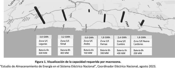 7.1. Conforme al "Estudio de Almacenamiento de Energía en el Sistema Eléctrico Nacional" publicado por el Coordinador Eléctrico Nacional en agosto de 2023, se identificó seis macrozonas en la zona norte del país, en las que se requiere la instalación de sistemas de almacenamiento de energía.