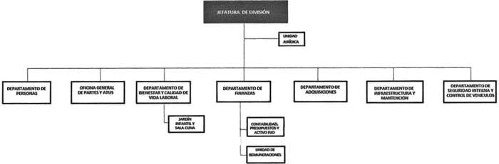 6. Se aprueba como nuevo organigrama de la División de Administración Interna y Abastecimiento el indicado en el considerando 8º de esta resolución.