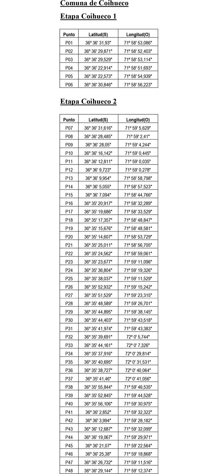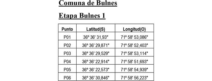 1. Autorízase a la concesionaria a modificar su concesión en el sentido de ampliar su zona de servicio a las comunas de Bulnes y Coihueco, Región de Ñuble con el objeto de incorporar, los siguientes puntos geográficos, (Datum WGS84), conformado por la unión circundada de ellos, incluyendo las edificaciones de sus respectivos costados exteriores: