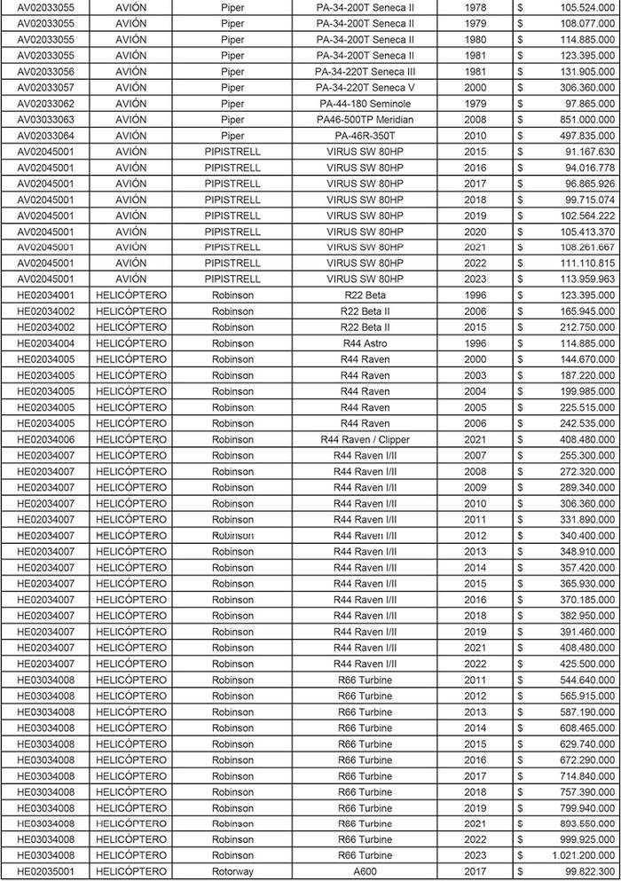 TASACIÓN DE AVIONES Y HELICÓPTEROS