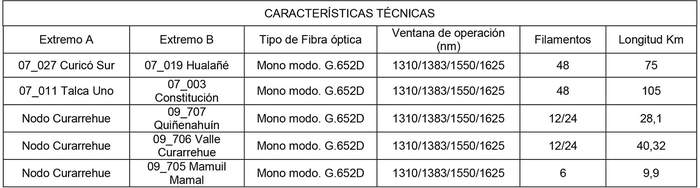 1. Autorízase a la concesionaria para instalar, operar y explotar los siguientes tramos de Fibra Óptica, según se indica a continuación: