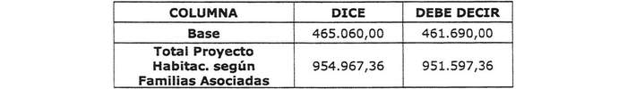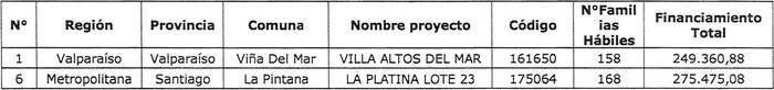 d) Reemplázase en la tabla inserta en su Anexo Único, en su fila Nº 1, correspondiente a la Región de Valparaíso, proyecto Villa Altos del Mar código 161650, los siguientes montos, según las columnas que se identifican a continuación