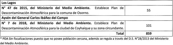 Artículo cuarto. Fiscalizaciones comprendidas en el programa y subprogramas de Planes de Prevención y/o Descontaminación Ambiental. Durante el año 2024, la Superintendencia, en conjunto con los organismos sectoriales, ejecutará el siguiente número de fiscalizaciones, según sea el caso, en las regiones del país en las cuales se encuentra vigente un Plan de Prevención y/o Descontaminación, respecto de aquellas medidas regulatorias sujetas a fiscalización y sanción de la Superintendencia.