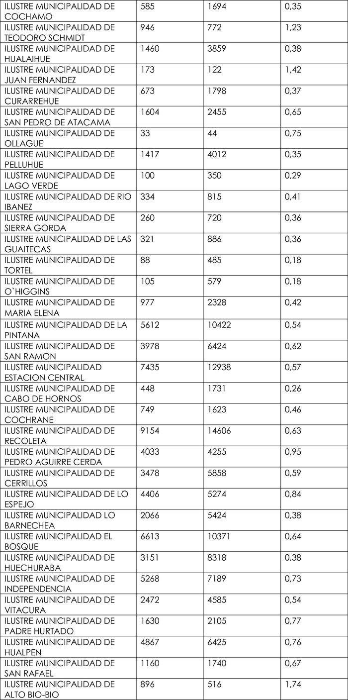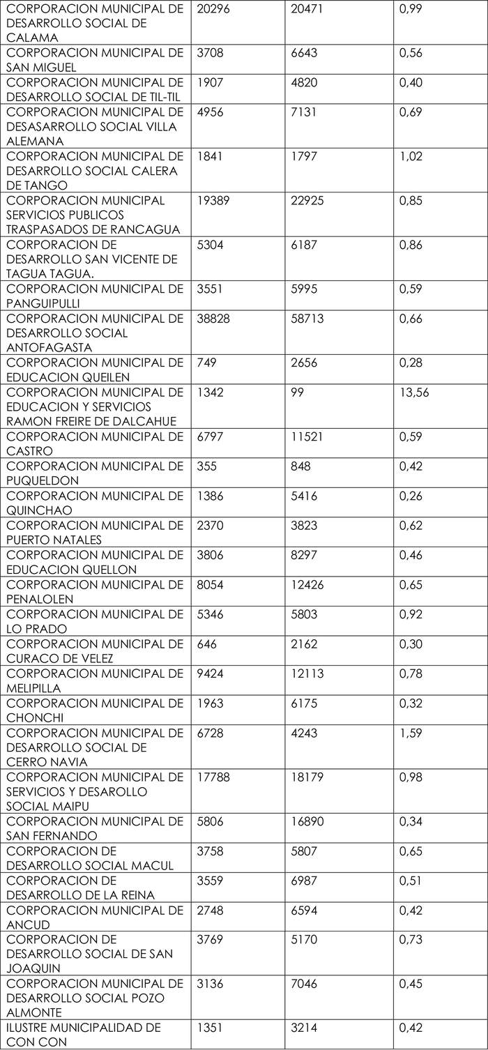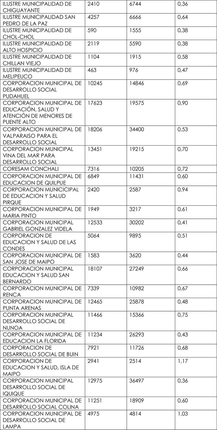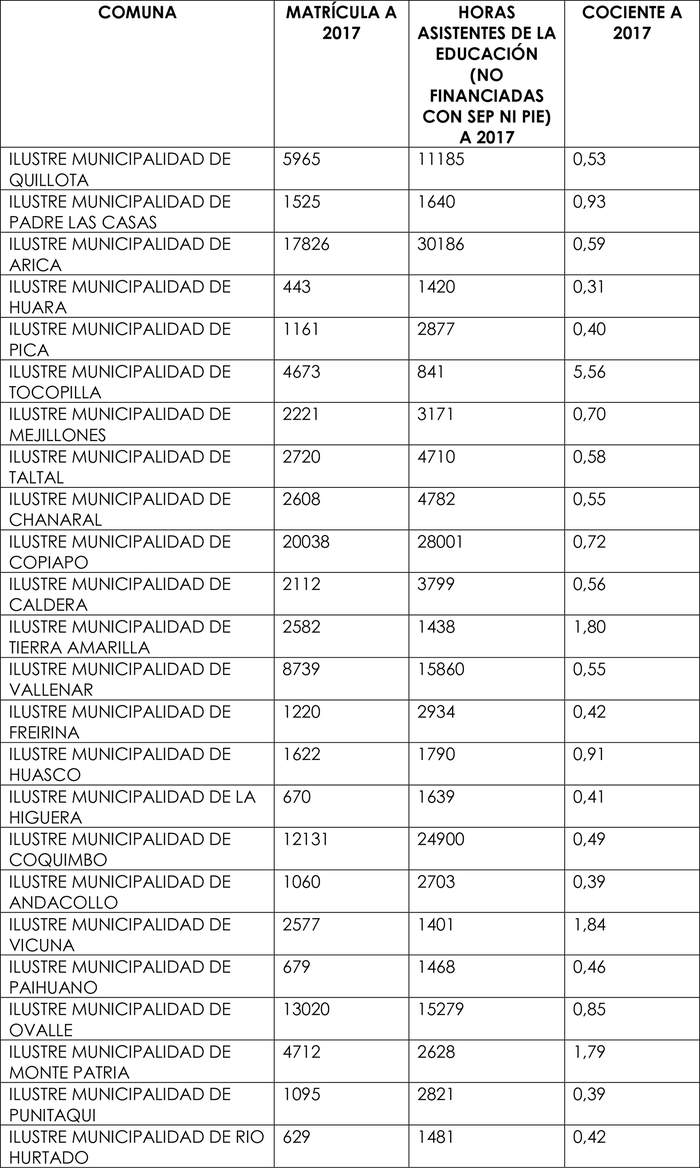2º Que, posteriormente, en sus incisos siguientes la norma regula la manera en que se deben fijar los haberes de los asistentes de la educación que serán de cargo de los Servicios Locales de Educación Pública, para lo cual se deberá calcular un cociente que resulte de la división entre la matrícula de la comuna que corresponda a diciembre de 2017 por el total de horas de contrato de los asistentes de la educación que se desempeñaban en los establecimientos dependientes de la municipalidad o corporación respectiva a la misma fecha;