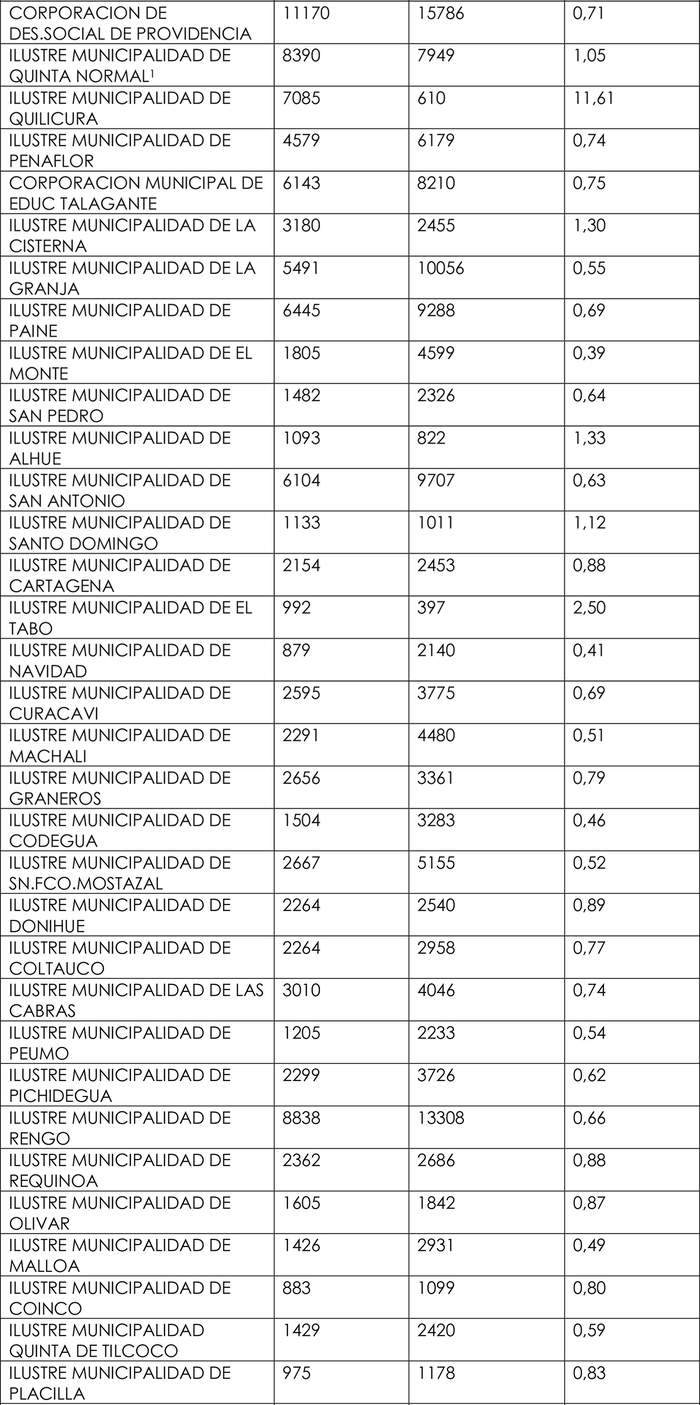 (1) Cálculo considera datos de matrícula al año 2017 y horas de contrato de los asistentes de la educación al mismo año, correspondientes tanto al Departamento de Educación Municipal de Quinta Normal como a la Corporación Comunal de Desarrollo de Quinta Normal.