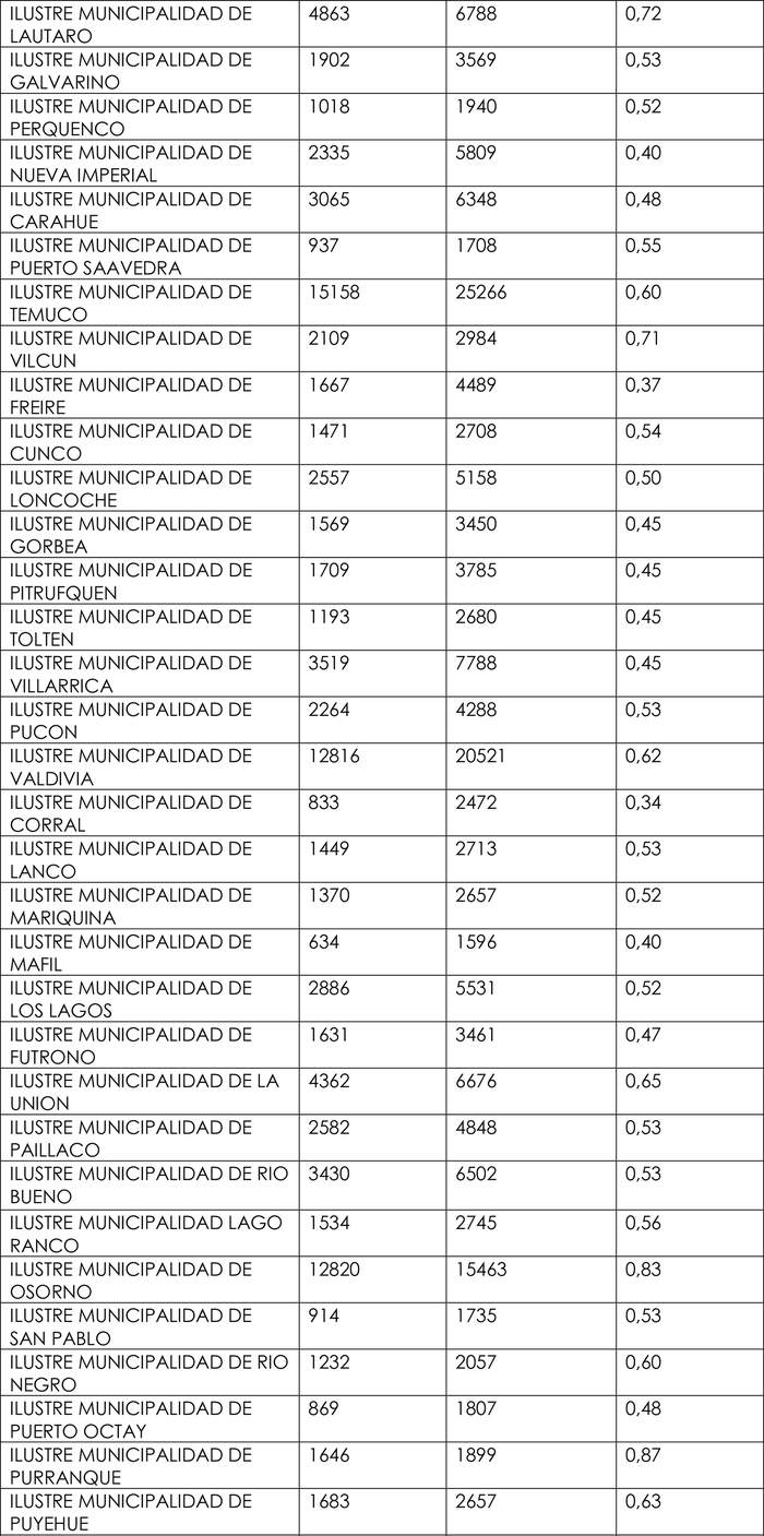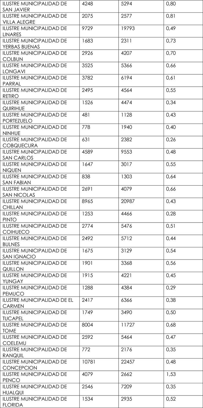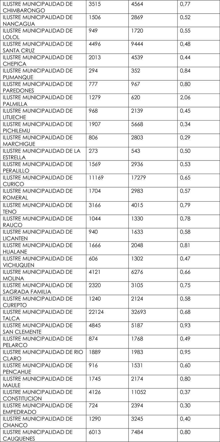 "Artículo primero: Fíjase la matrícula al año 2017 y el total de horas de asistentes de la educación al mismo año, descontando aquella proporción que corresponda a horas financiadas con recursos provenientes de la Subvención Escolar Preferencial y de Proyectos de Integración Escolar, así como también el cociente resultante entre ambas variables, de acuerdo a lo dispuesto en el artículo cuadragésimo segundo bis transitorio de la ley Nº 21.040, según el cuadro que sigue: