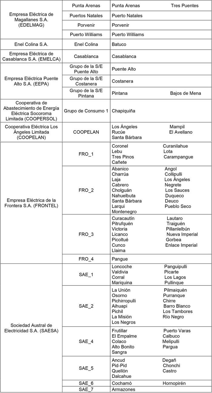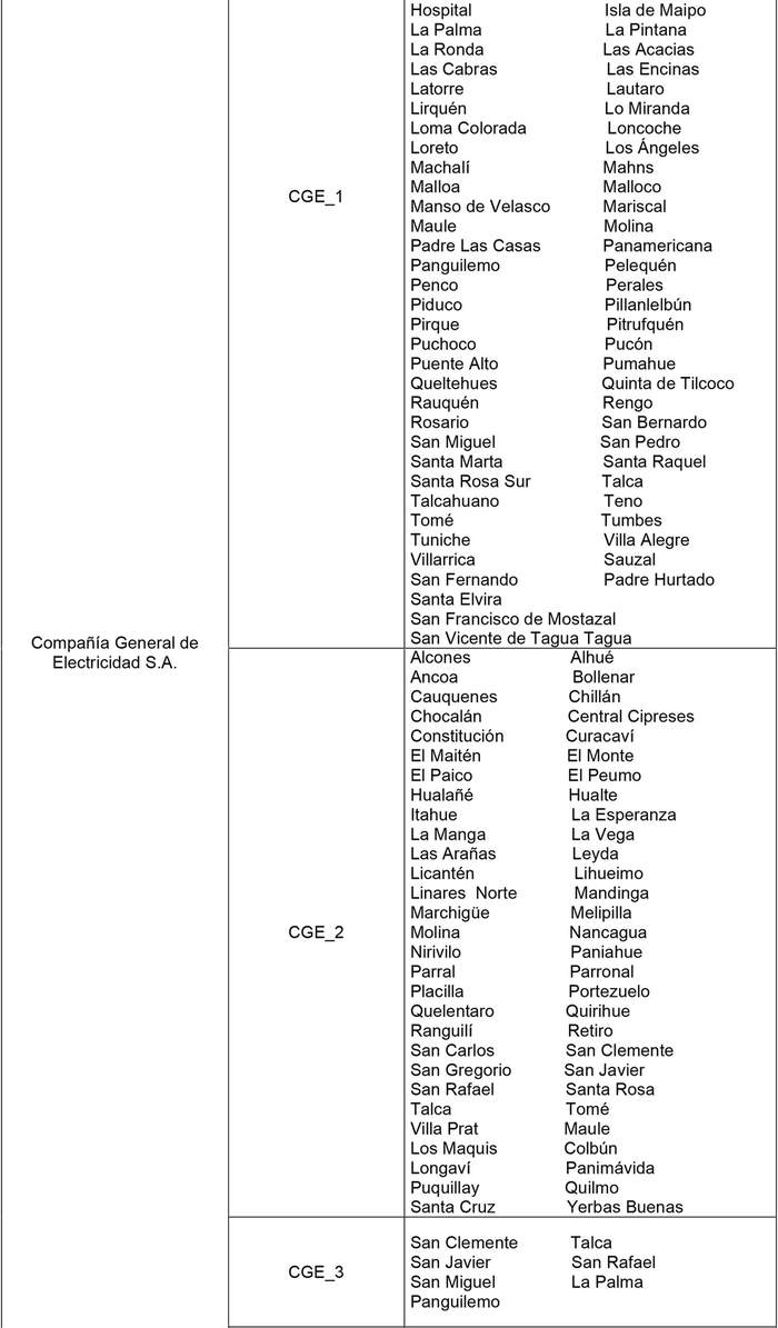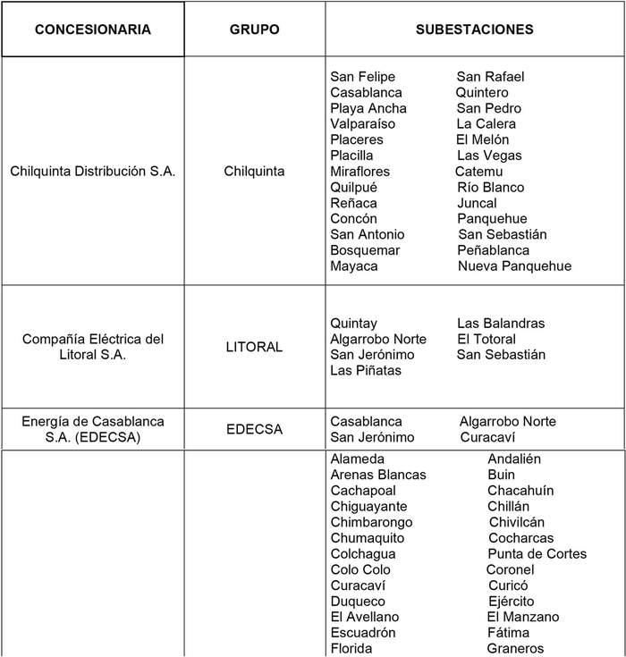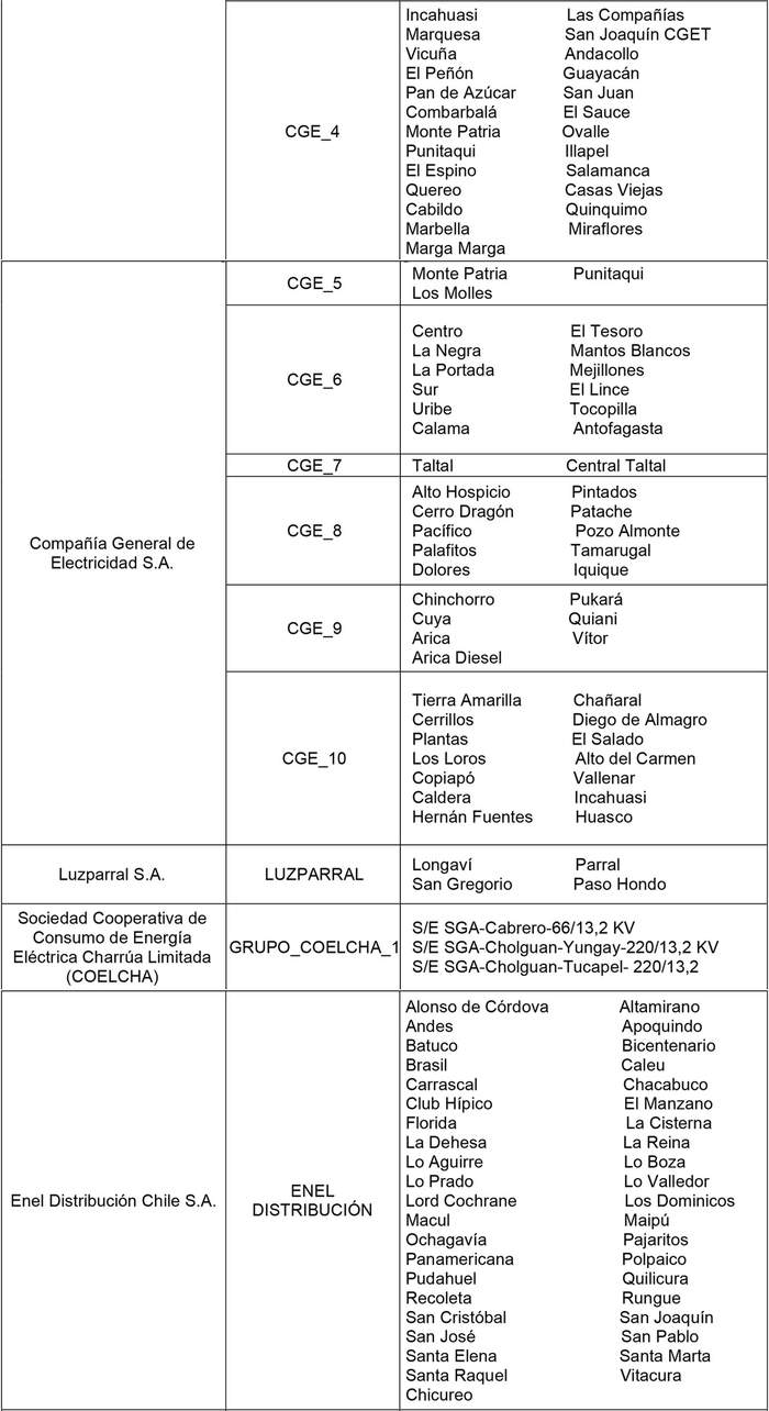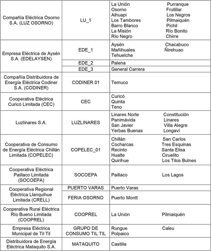 e) Lo señalado en Carta SGR-10/2023 de Chilquinta Distribución S.A.; Carta SGO-053/2023 de Compañía Eléctrica del Litoral S.A.; Carta EC-192/2023 de Energía de Casablanca S.A.; Carta del Centro de Despacho y Control Nº 270/2023 de Compañía General de Electricidad S.A.; Carta Lp-2157/2023 de Luzparral S.A.; Carta C-429-2023 de Coelcha Ltda.; Carta GR Nº 69/2023 de Enel Distribución Chile S.A.; Carta EEMG Nº 1130/2022-G de Edelmag S.A.; Carta ECSA 072/2023 de Enel Colina S.A.; Carta EMEL.2022.294 de Emelca S.A.; Carta GO Nº 158/2023 de Empresa Eléctrica Puente Alto S.A.; Carta Ord. Nº 34/2023 de Coopersol Ltda.; Carta G Nº 1665/2023 de Coopelan Ltda.; Carta Nº 1545592 del Grupo SAESA; Carta GD Nº 0488/23 de Codiner S.A.; Carta CEC Nº 1702/2023 de Cooperativa Eléctrica Curicó Ltda.; Carta Li-5641/2023 de Luzlinares S.A.; Carta Nº 12872/2022 de Copelec Ltda.; Carta Nº 247/2023 de Socoepa Ltda.; Carta Nº 04200/2023 de Crell Ltda.; Carta Nº 112023/R322 de Cooprel Ltda.; Carta Nº 133/2023 de Empresa Eléctrica Municipal de Til Til; y Carta ADM Nº 027/23 de Distribuidora de Energía Eléctrica Mataquito S.A.; en las cuales las distribuidoras actualizan sus Grupos de Consumo;