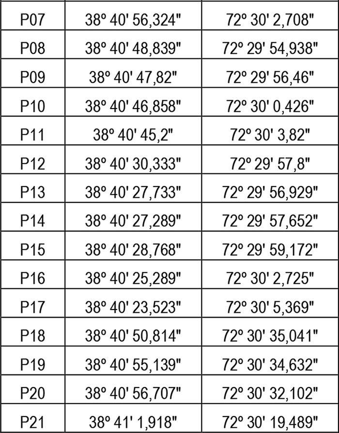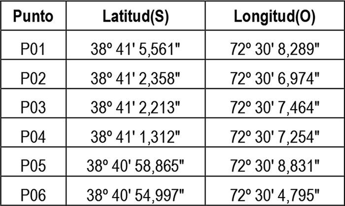 1. Autorízase a la concesionaria a modificar su concesión en el sentido de ampliar su zona de servicio a la comuna de Vilcún, Región de la Araucanía, con el objeto de incorporar, los siguientes puntos geográficos (Datum WGS84), conformado por la unión circundada de ellos, incluyendo las edificaciones de sus respectivos costados exteriores: