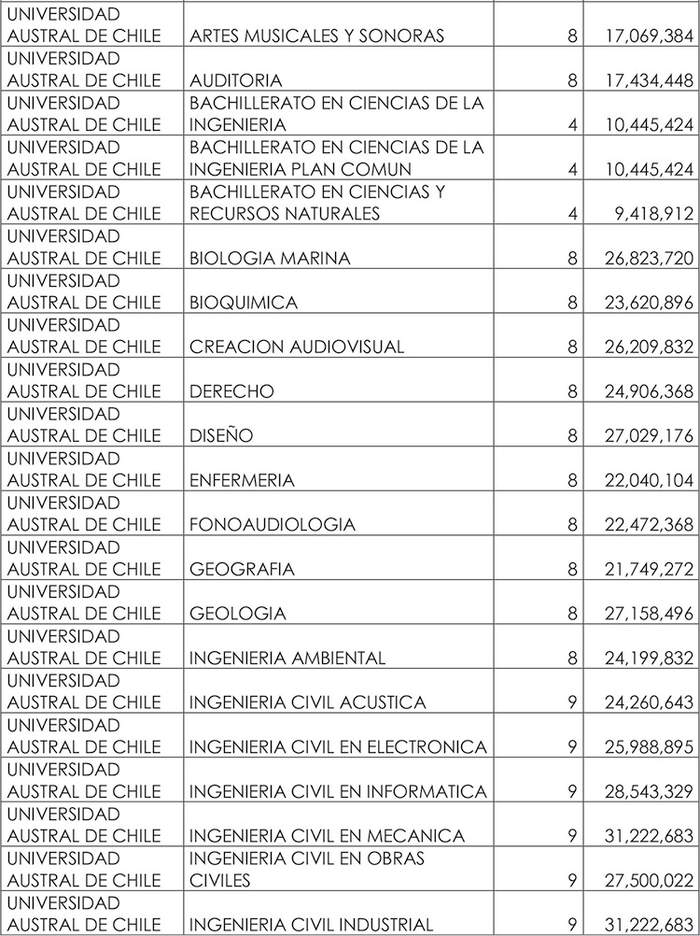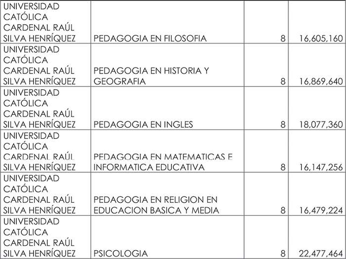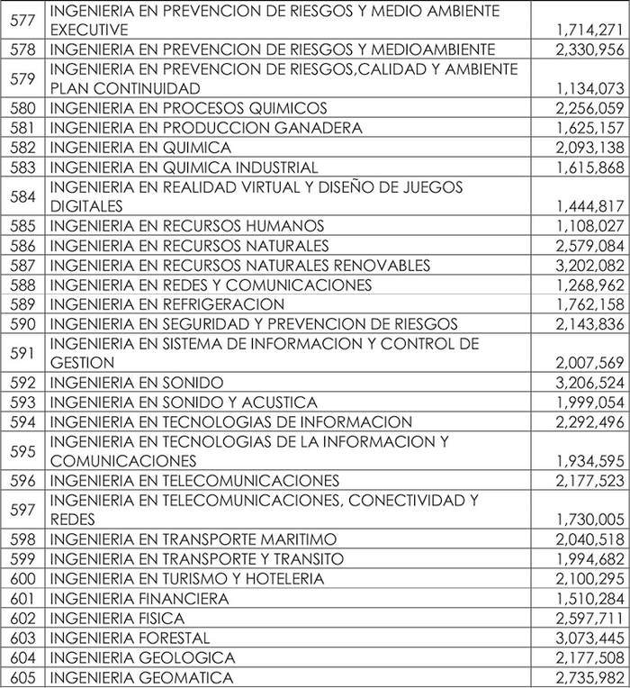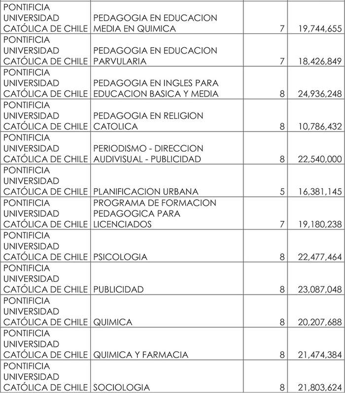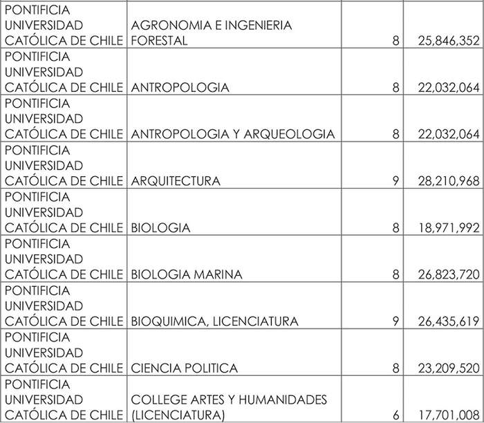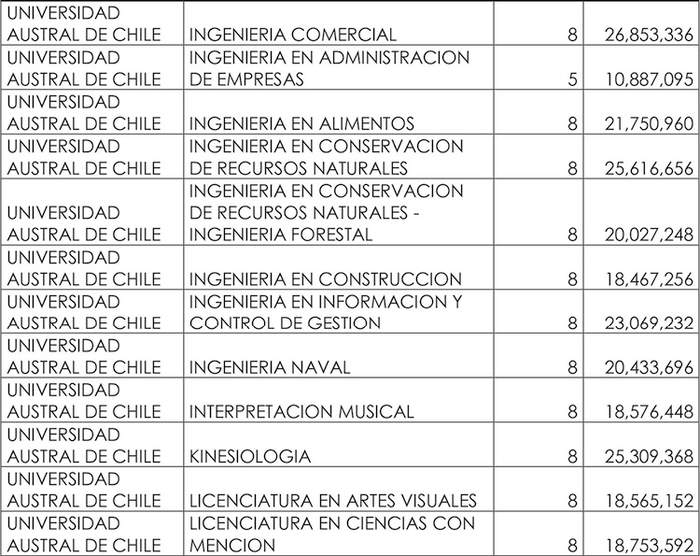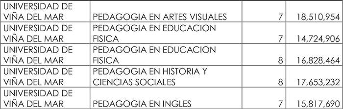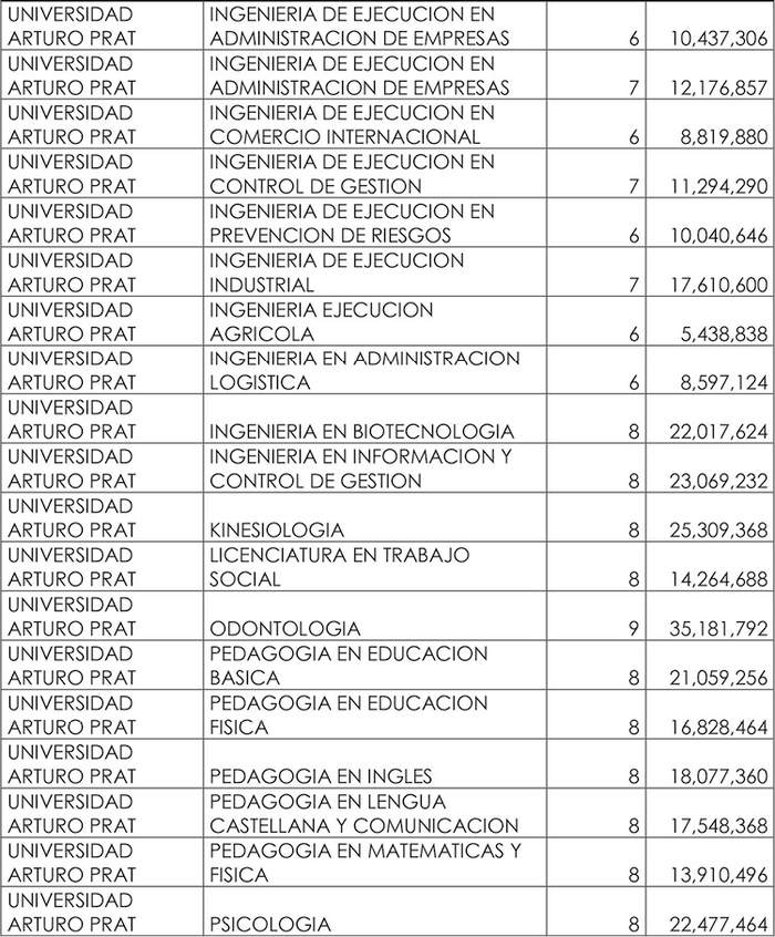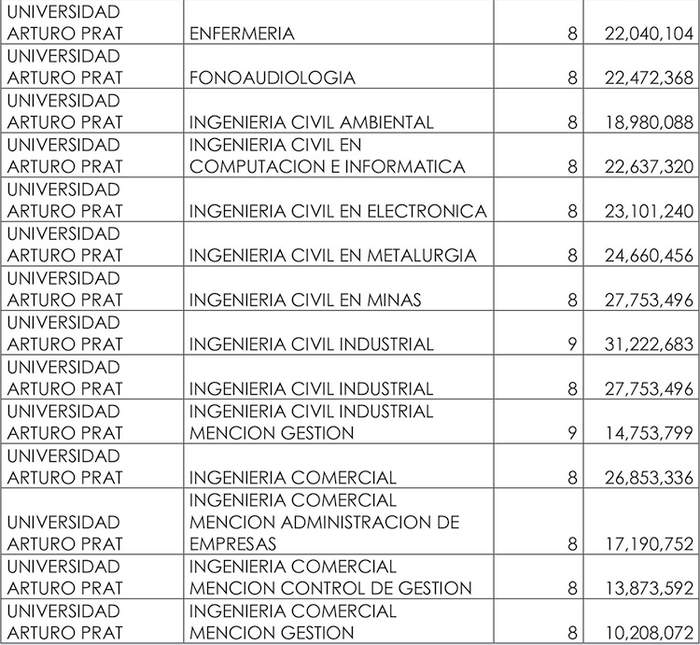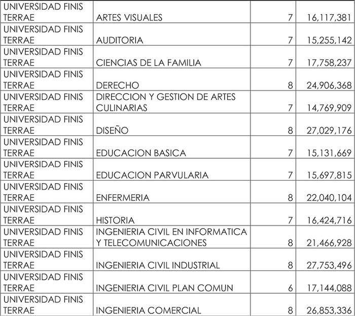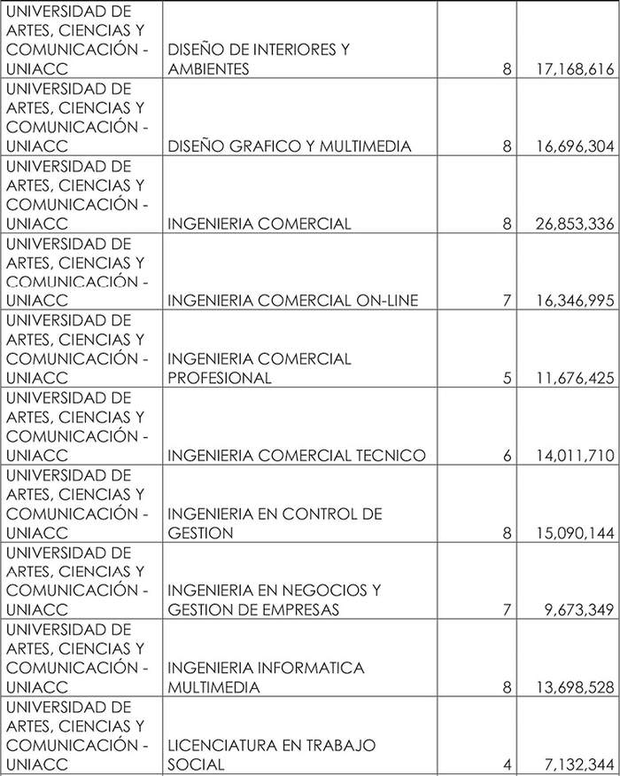 Artículo 3º.- Para efectos de lo dispuesto en los incisos primero y segundo del artículo 4º de la ley Nº 20.027, y de acuerdo a lo establecido en el artículo 33º del Reglamento de la ley Nº 20.027, cuyo texto fue establecido por el decreto supremo Nº 182, de 2005, modificado por los decretos supremos Nº 266, de 2009, y Nº 47, de 2013, todos del Ministerio de Educación, fíjase para el año 2020, como valor máximo a garantizar por el Fisco en las carreras que se indican, los valores que a continuación se señalan: