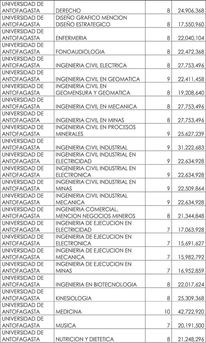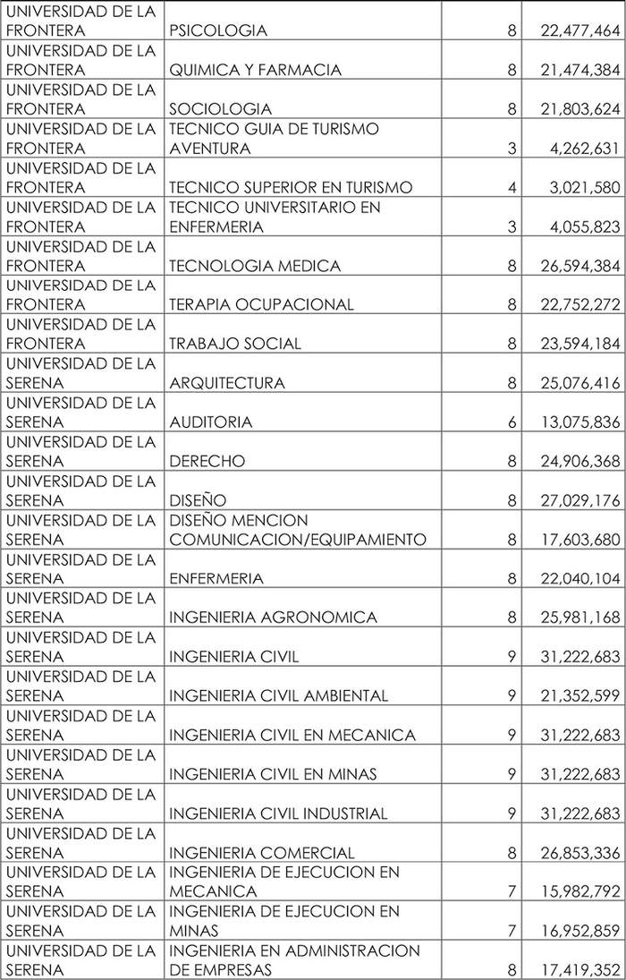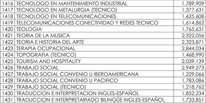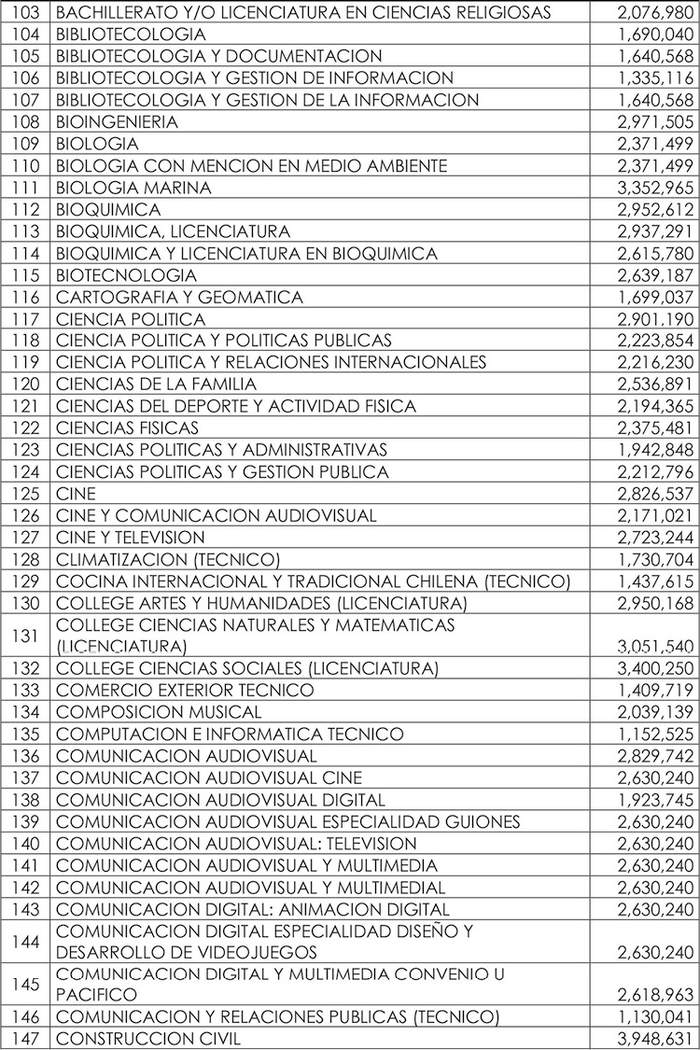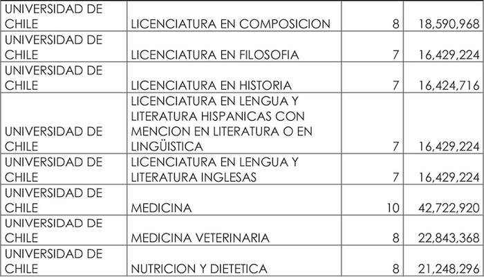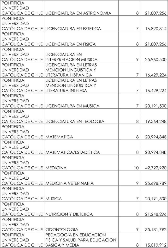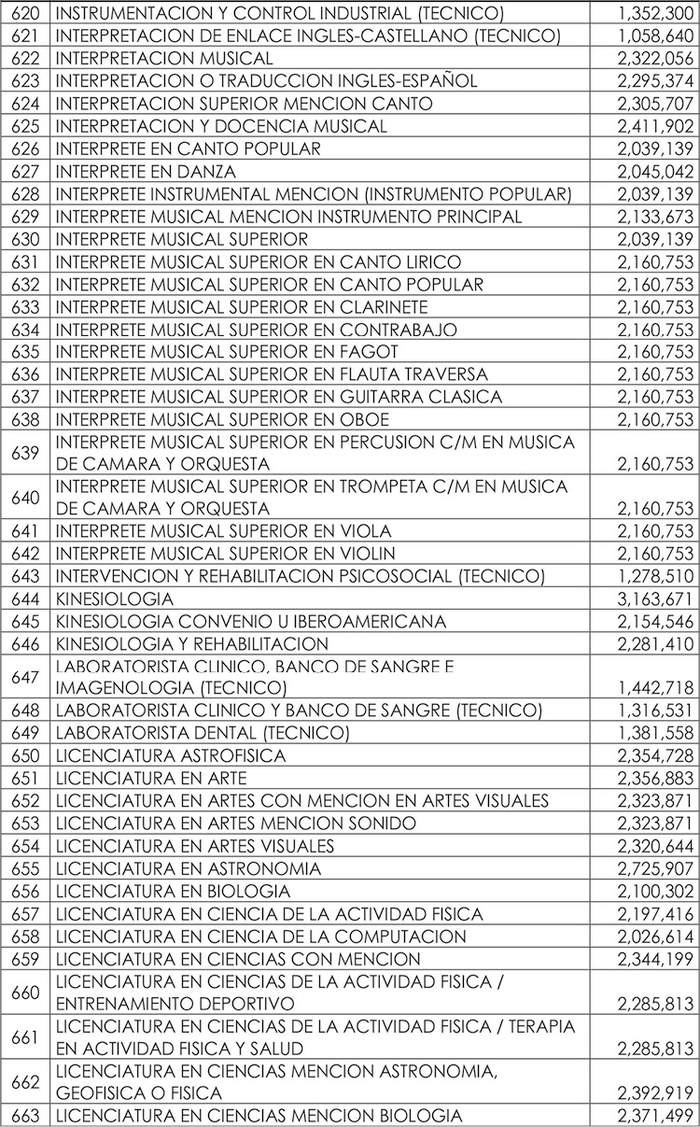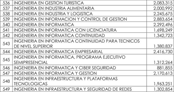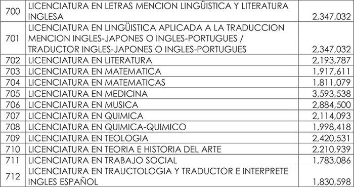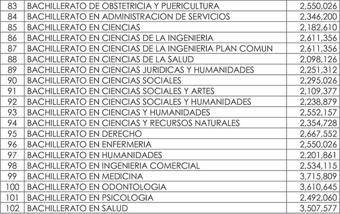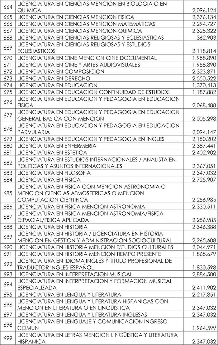 Que, tratándose de estudiantes matriculados como alumnos regulares en carreras conducentes a grado de licenciado, el número de aranceles de referencia se aumentará en tres.
