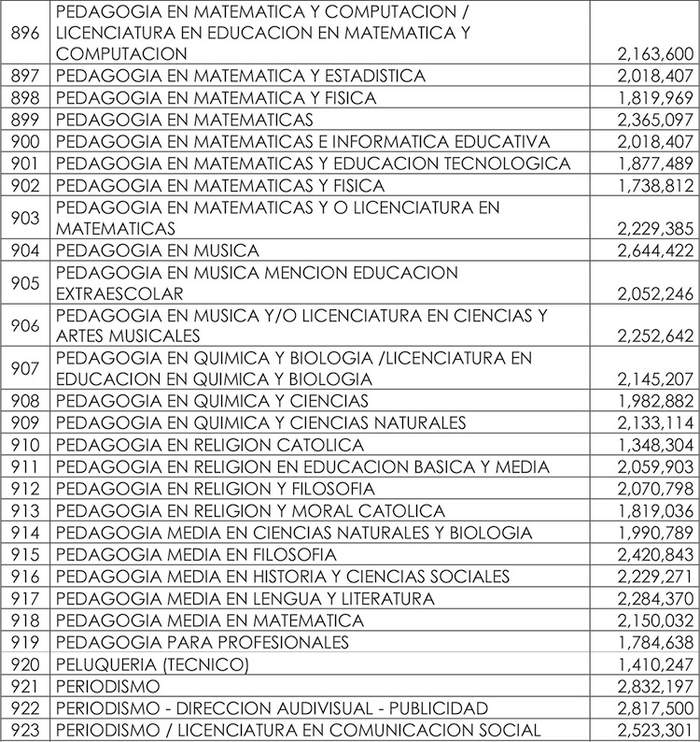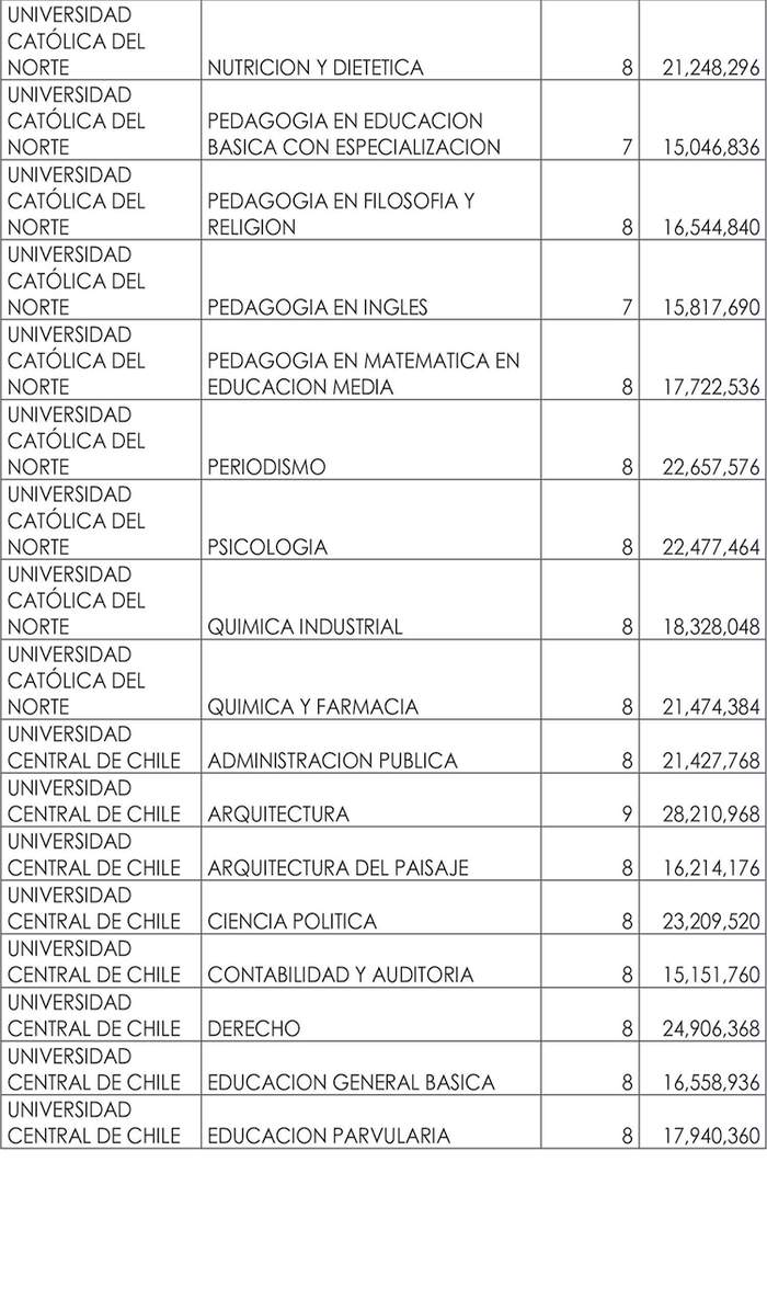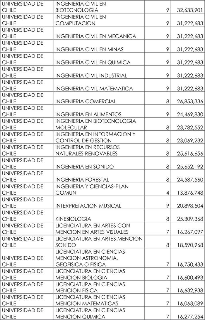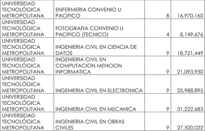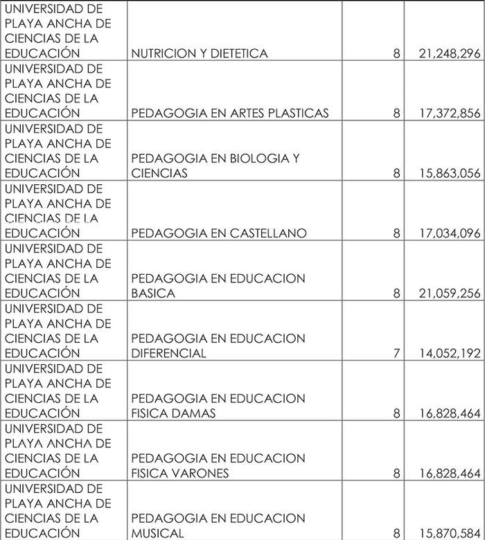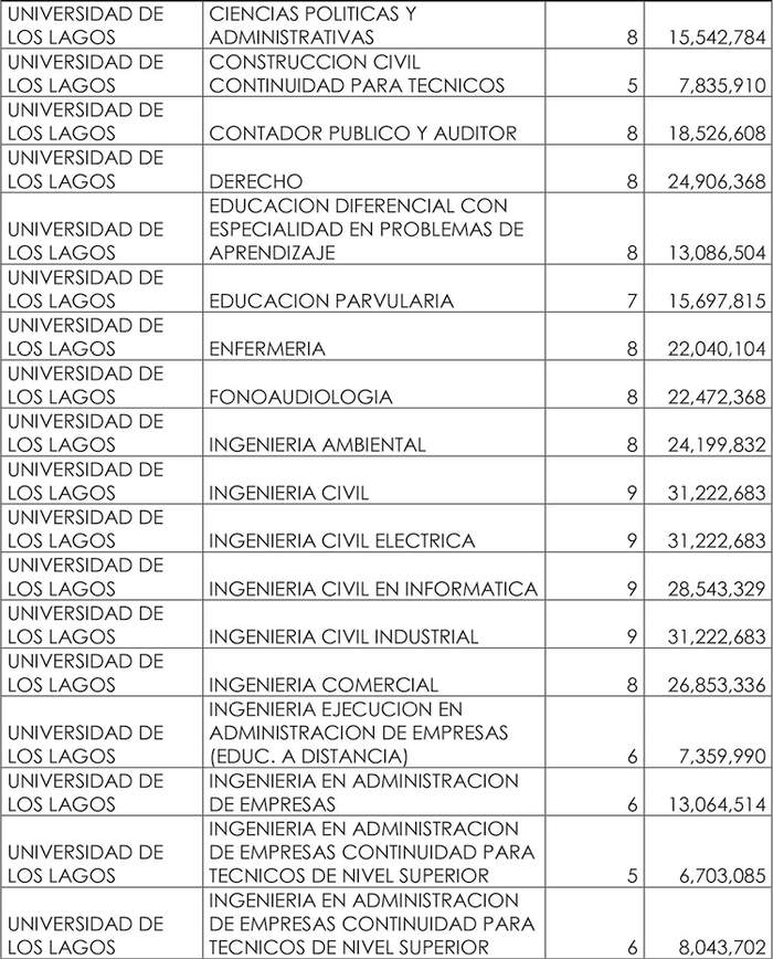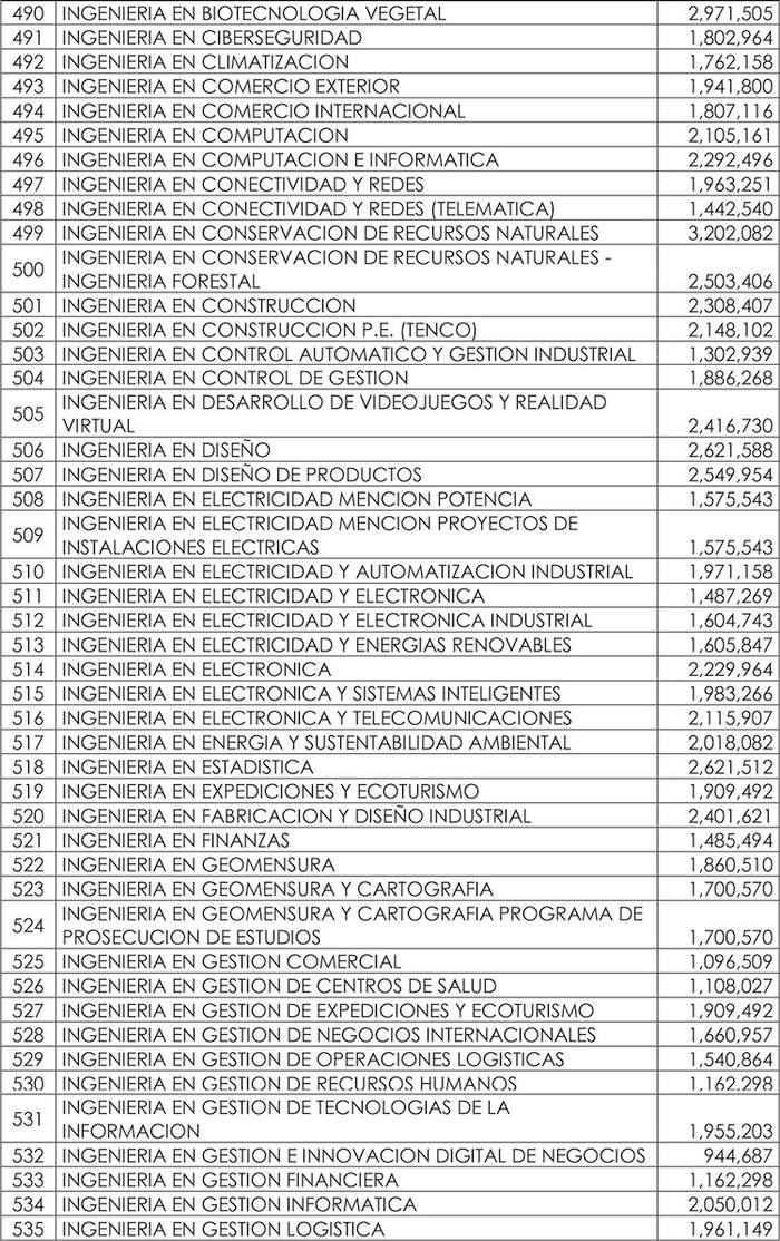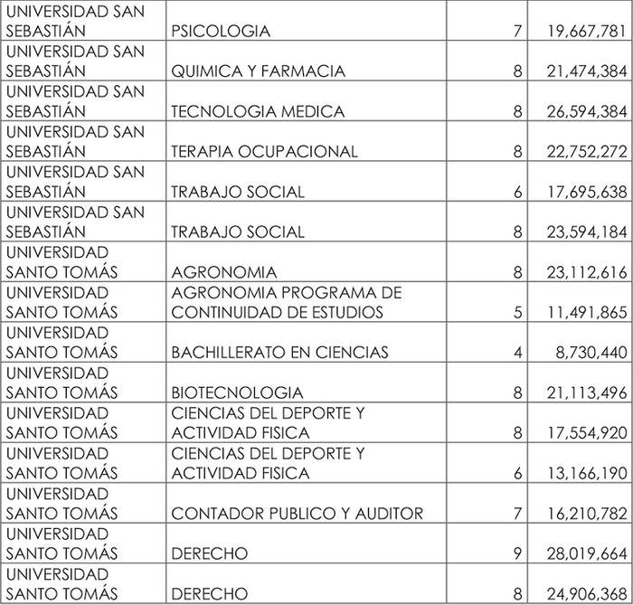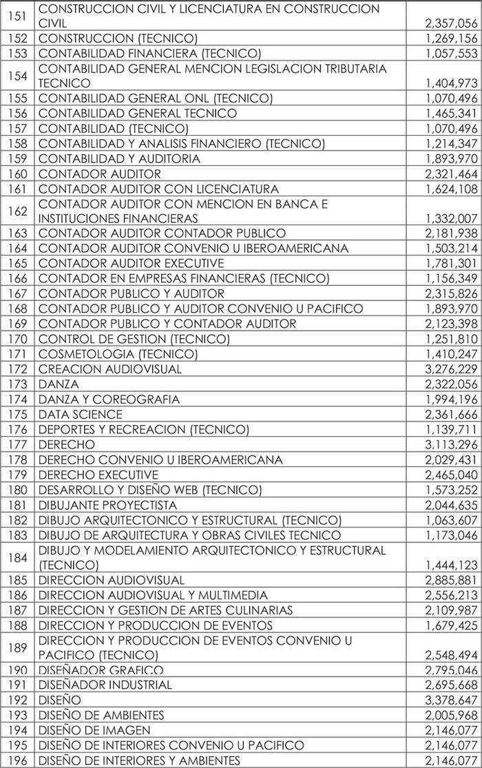 Que, tratándose de estudiantes matriculados como alumnos regulares en carreras conducentes a grado de licenciado, el número de aranceles de referencia se aumentará en tres.