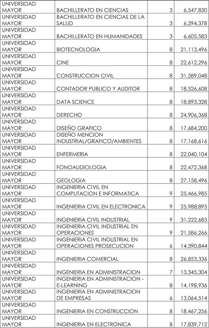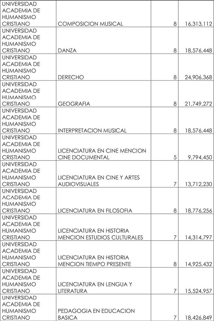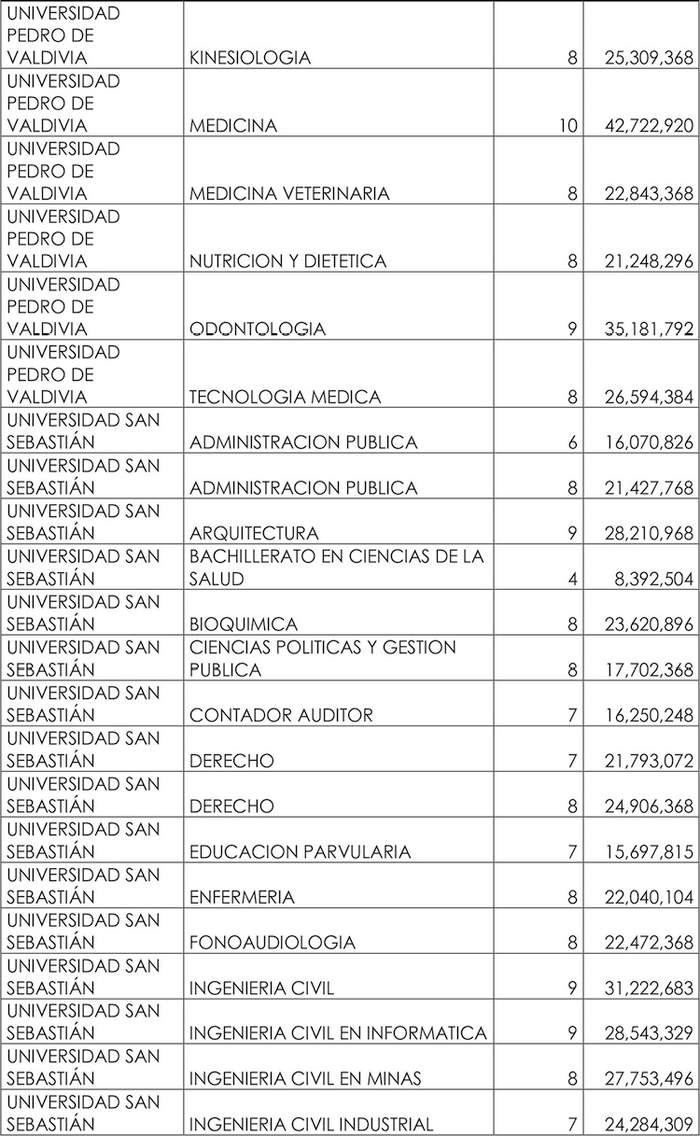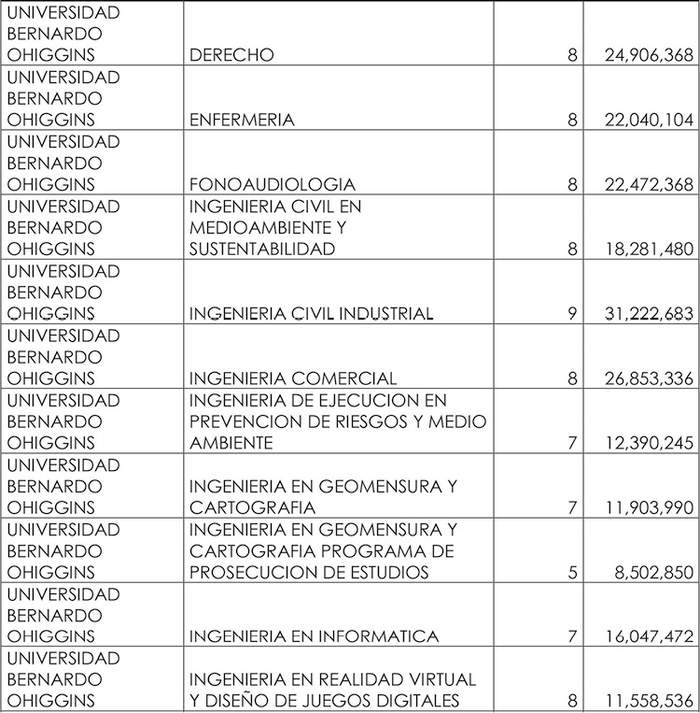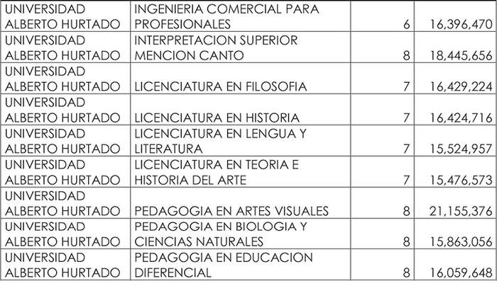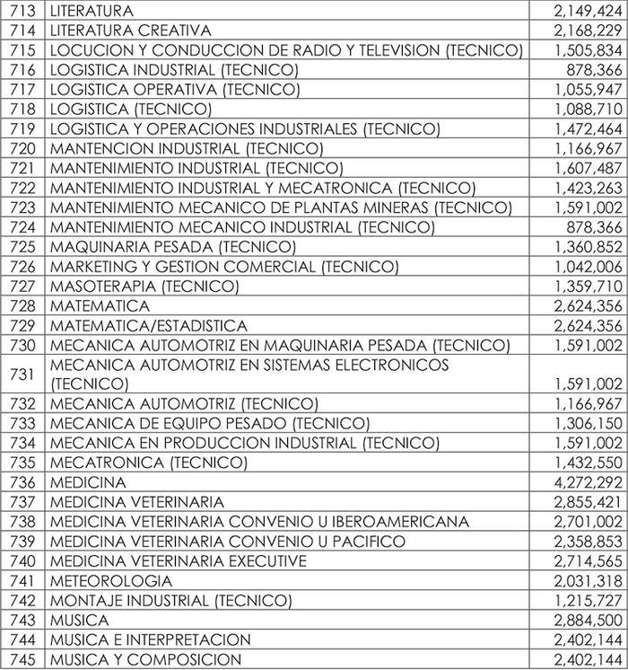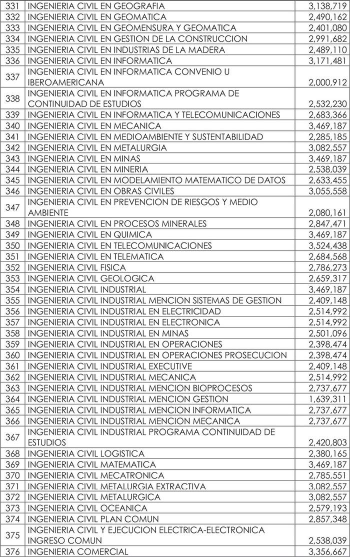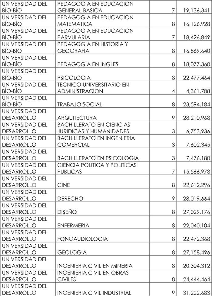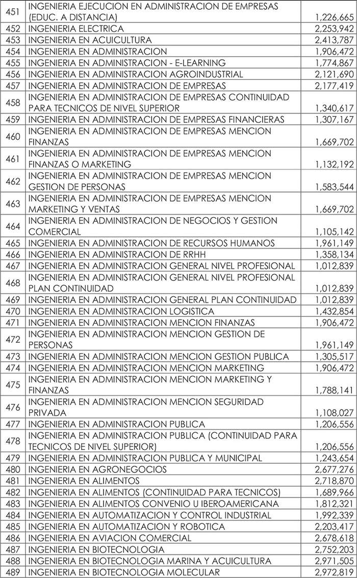 Que, tratándose de estudiantes matriculados como alumnos regulares en carreras conducentes a grado de licenciado, el número de aranceles de referencia se aumentará en tres.