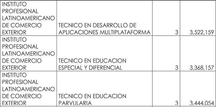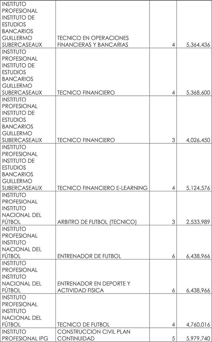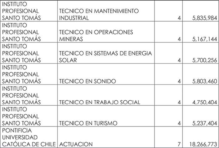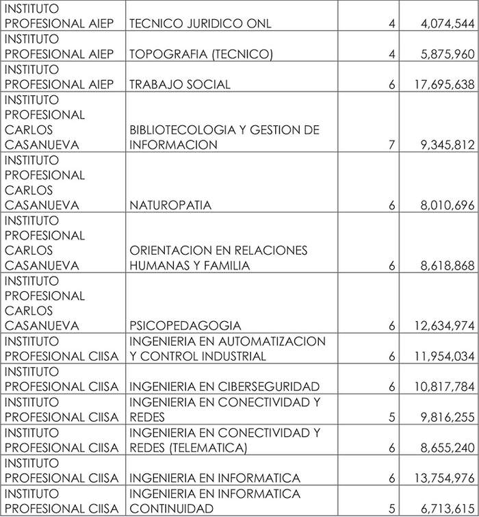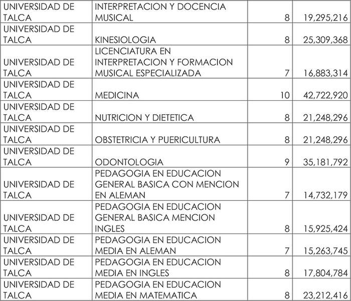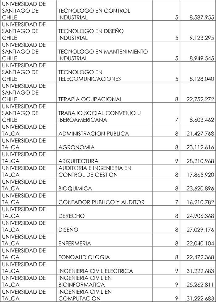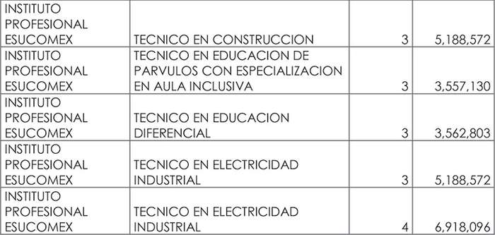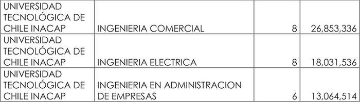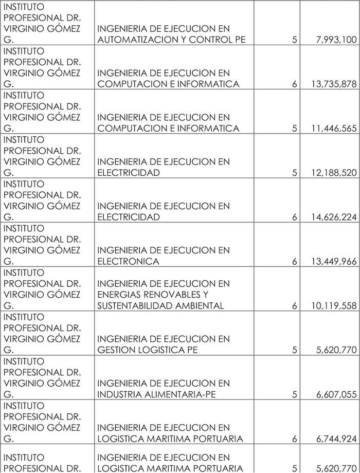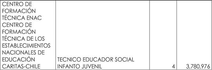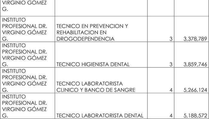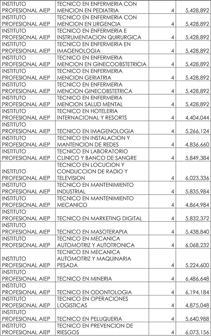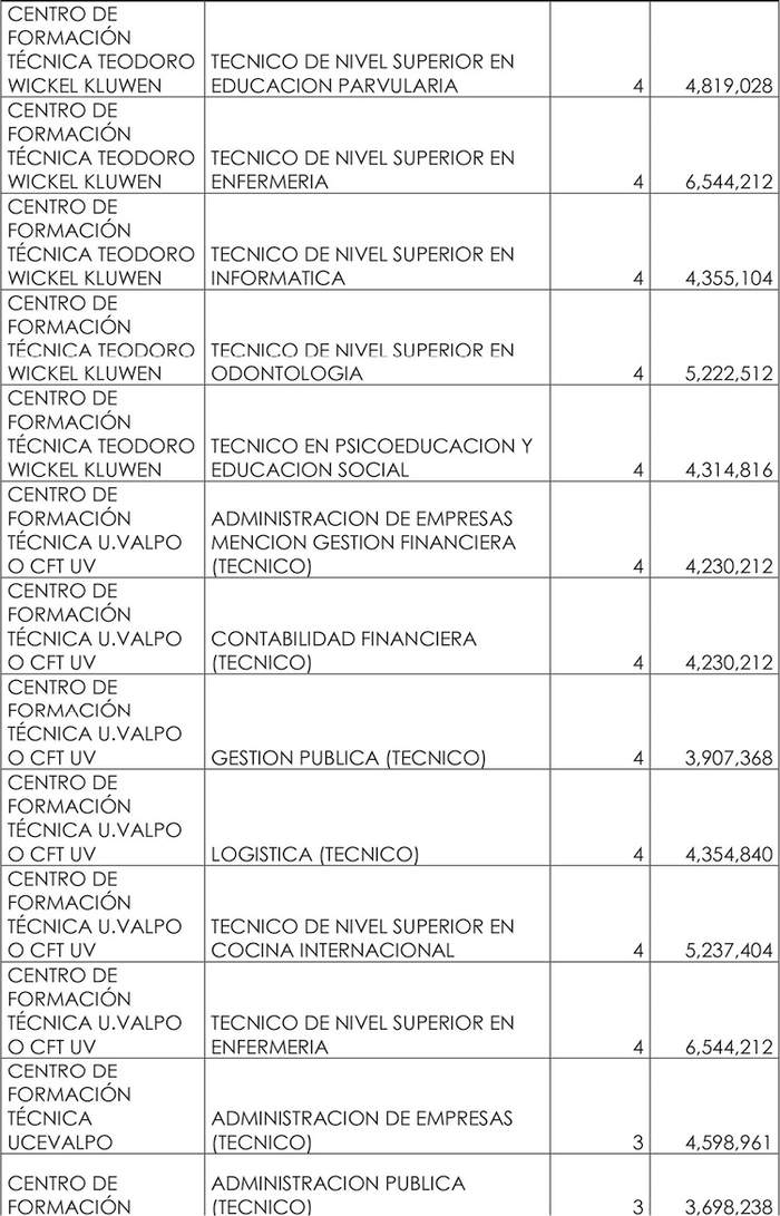 Artículo 4º.- Determínase, para efectos de lo dispuesto en el inciso tercero del artículo 4º de la ley Nº 20.027 y en el artículo 34º de su Reglamento, que el monto total garantizado por alumno no podrá exceder los valores que para cada institución superior y carrera se indican en la tabla siguiente, valores a los que se les agregará: