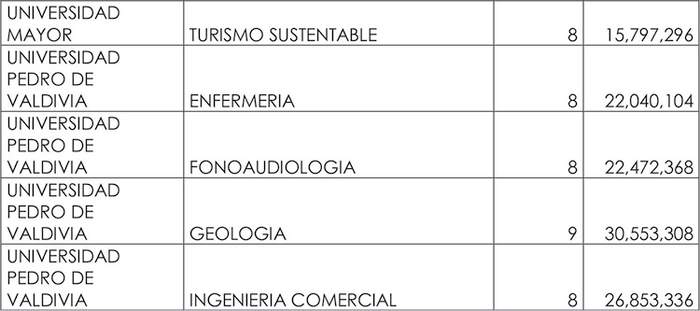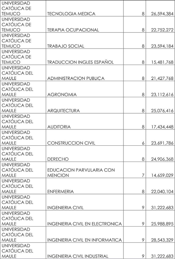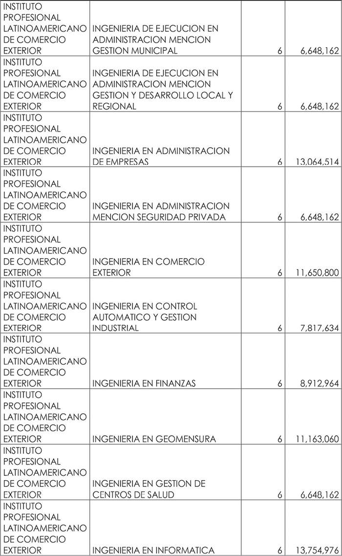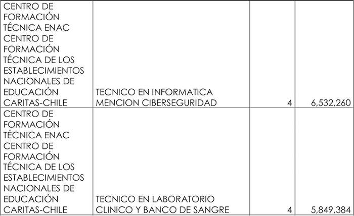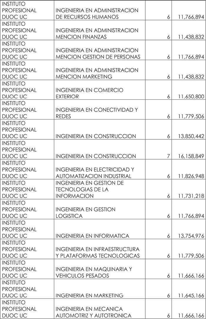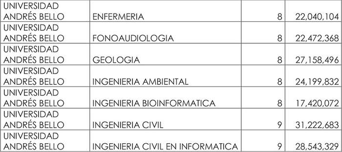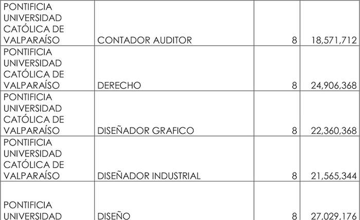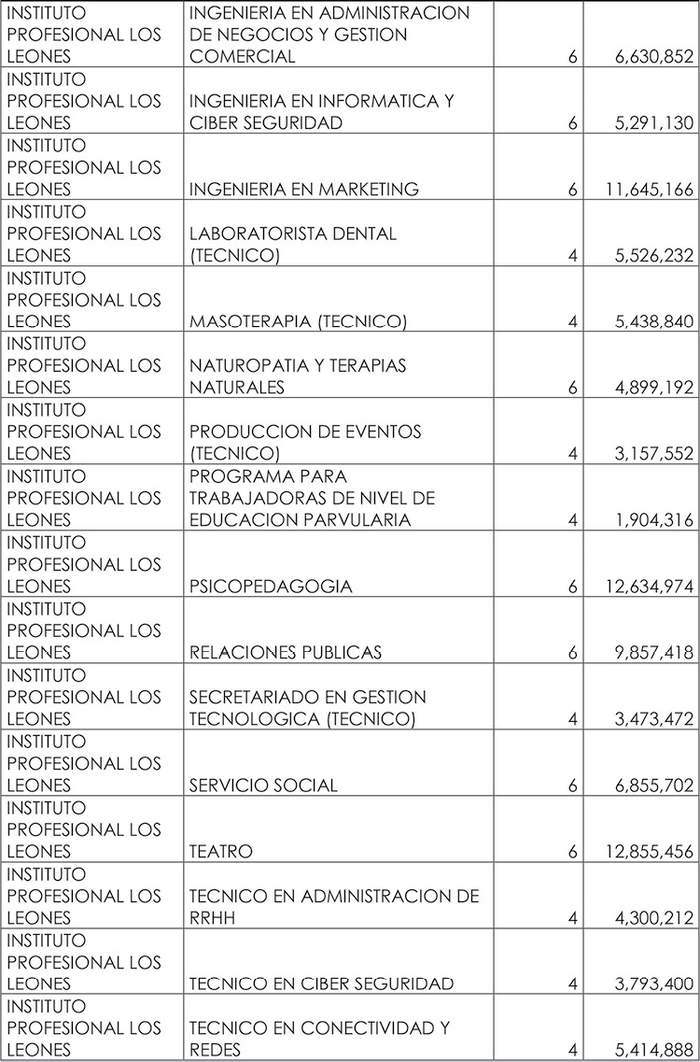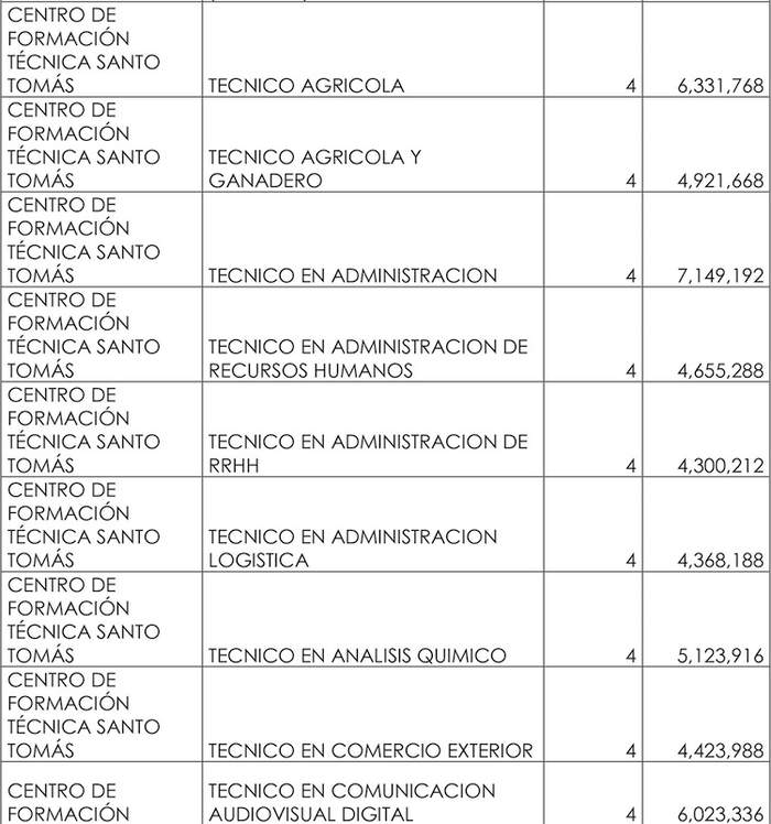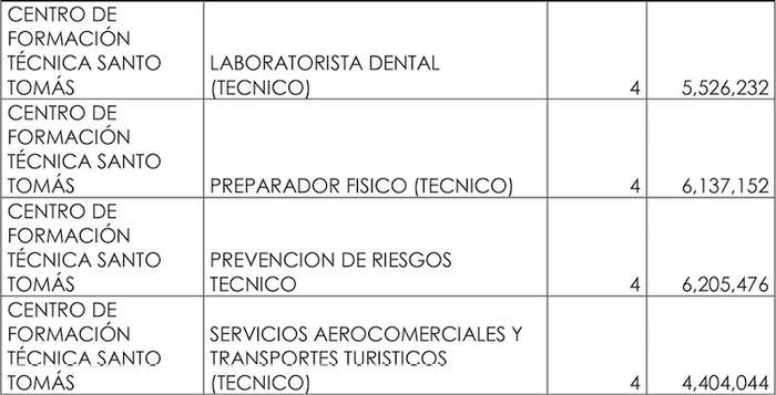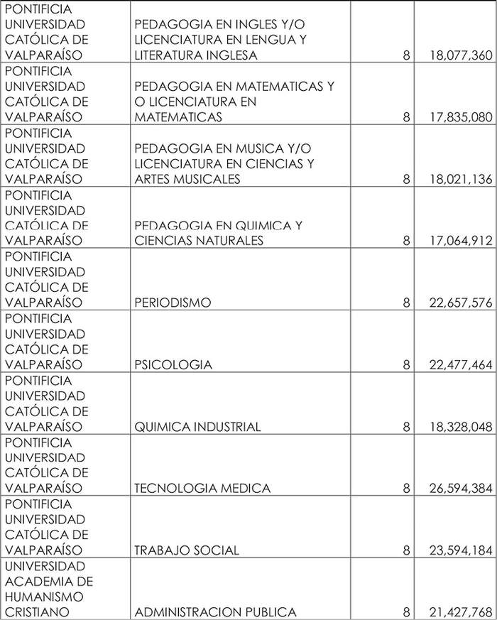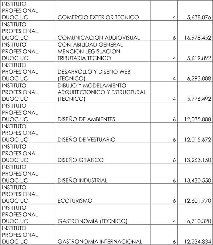Artículo 4º.- Determínase, para efectos de lo dispuesto en el inciso tercero del artículo 4º de la ley Nº 20.027 y en el artículo 34º de su Reglamento, que el monto total garantizado por alumno no podrá exceder los valores que para cada institución superior y carrera se indican en la tabla siguiente, valores a los que se les agregará: