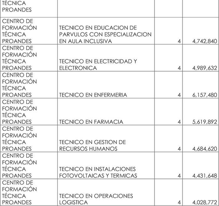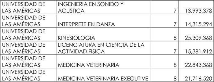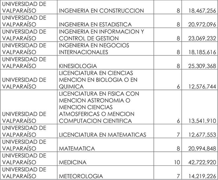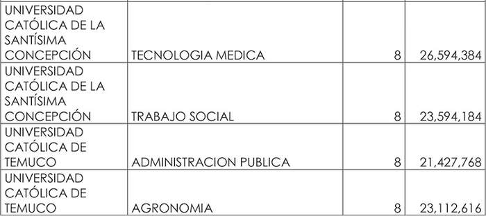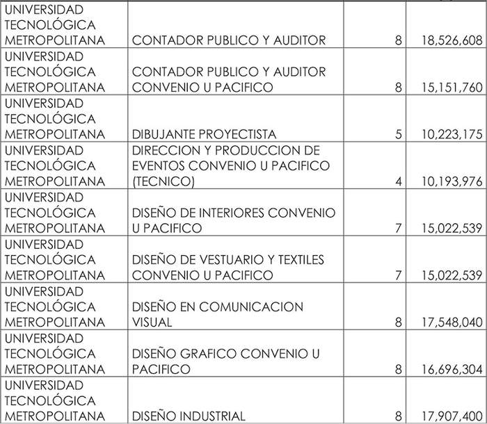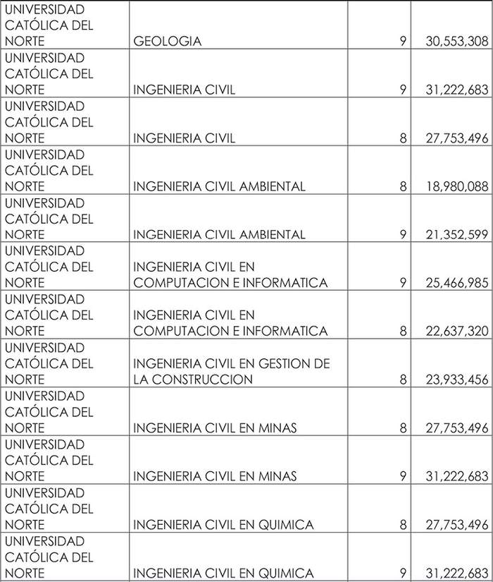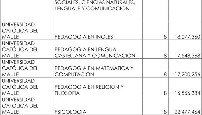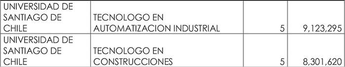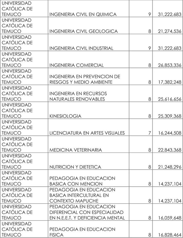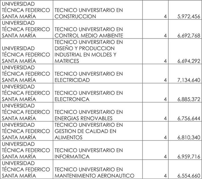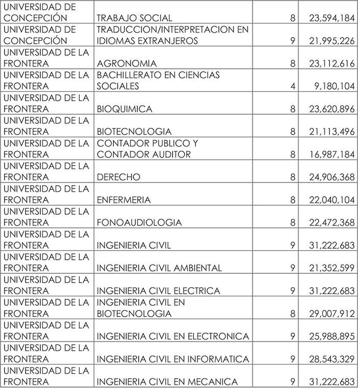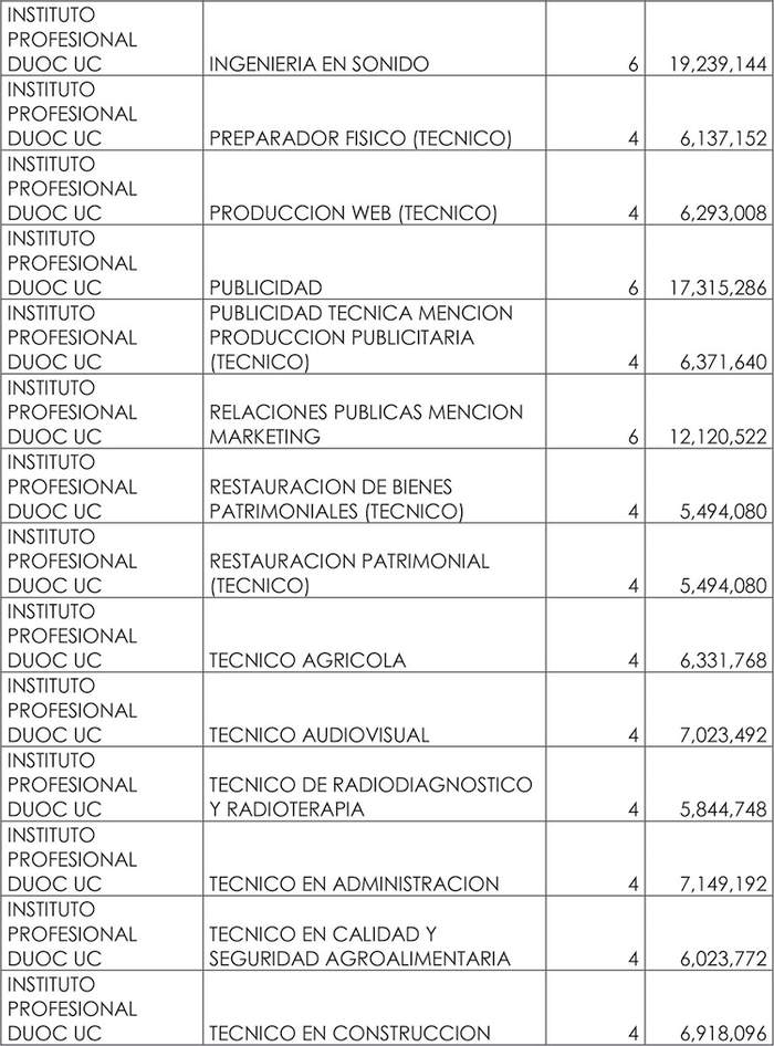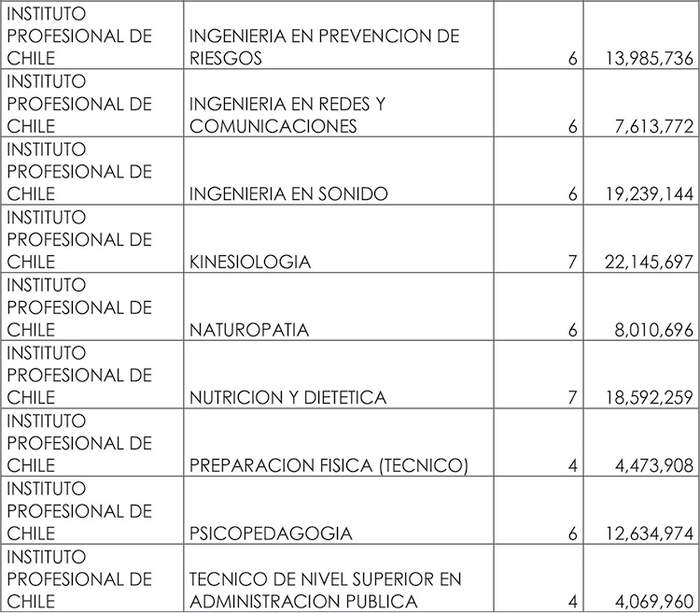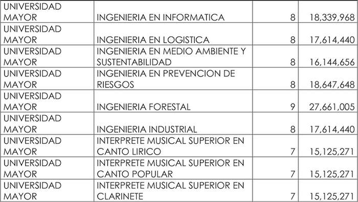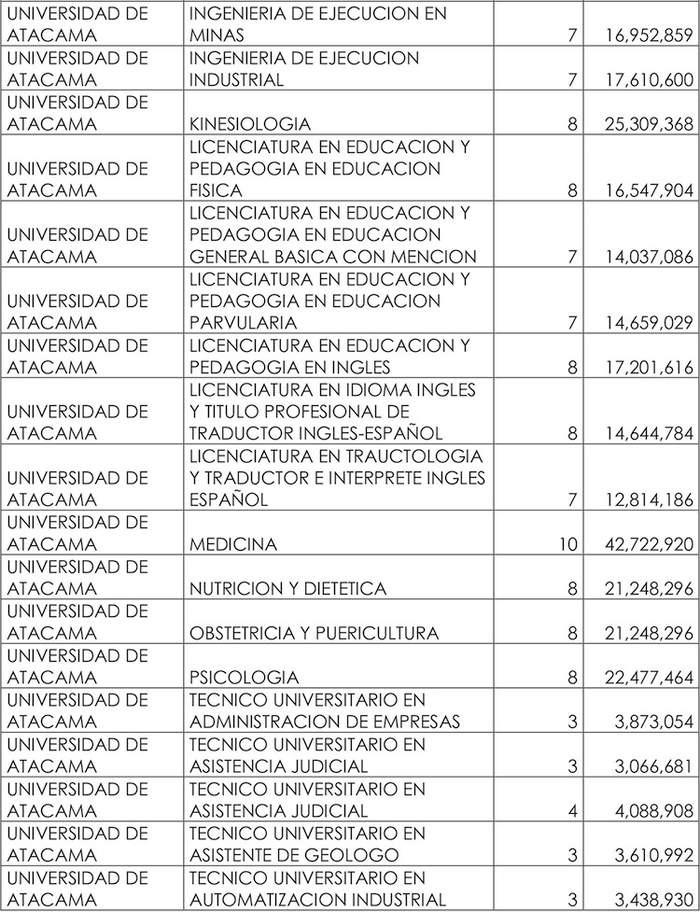 Artículo 4º.- Determínase, para efectos de lo dispuesto en el inciso tercero del artículo 4º de la ley Nº 20.027 y en el artículo 34º de su Reglamento, que el monto total garantizado por alumno no podrá exceder los valores que para cada institución superior y carrera se indican en la tabla siguiente, valores a los que se les agregará:
