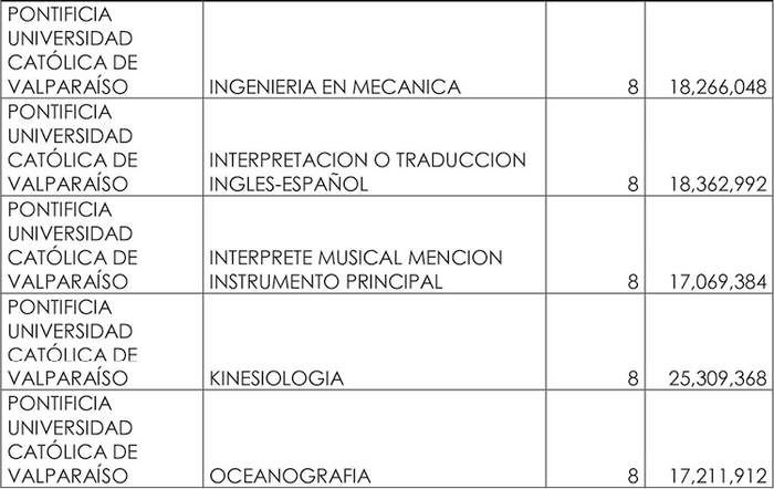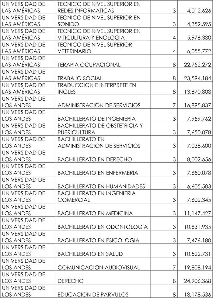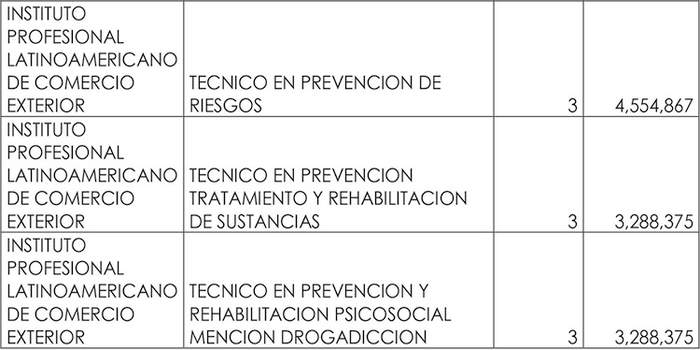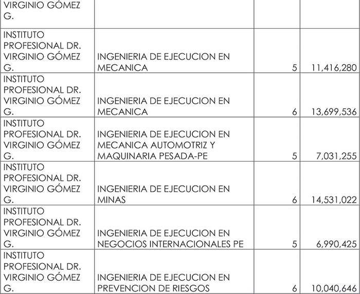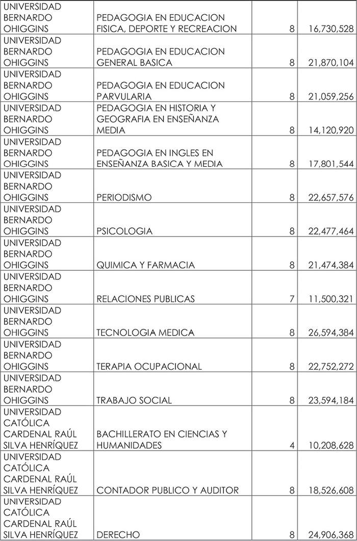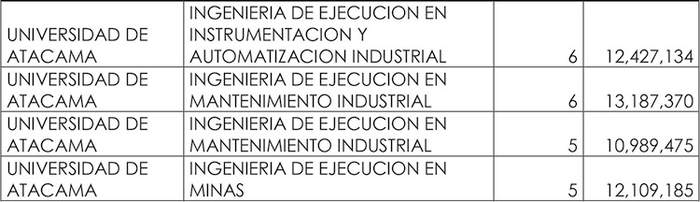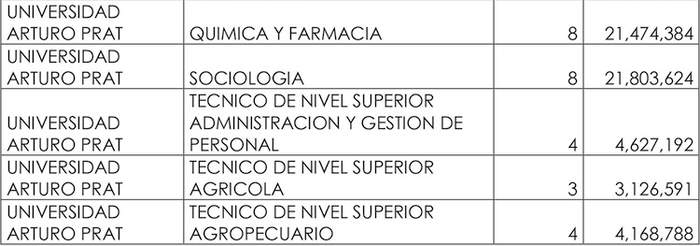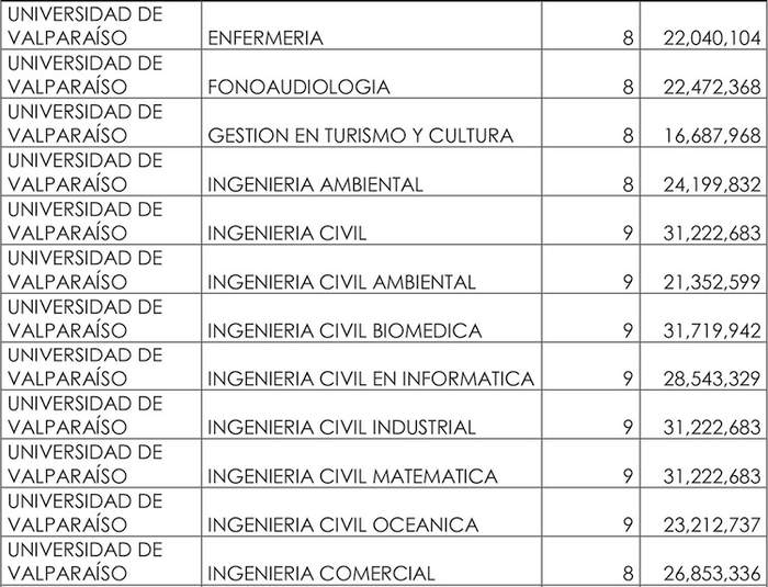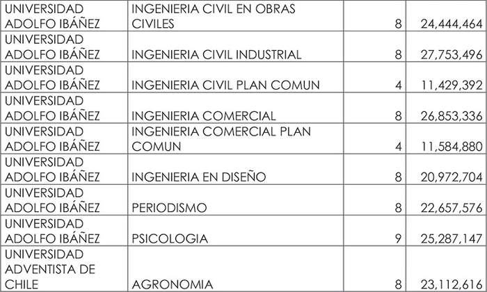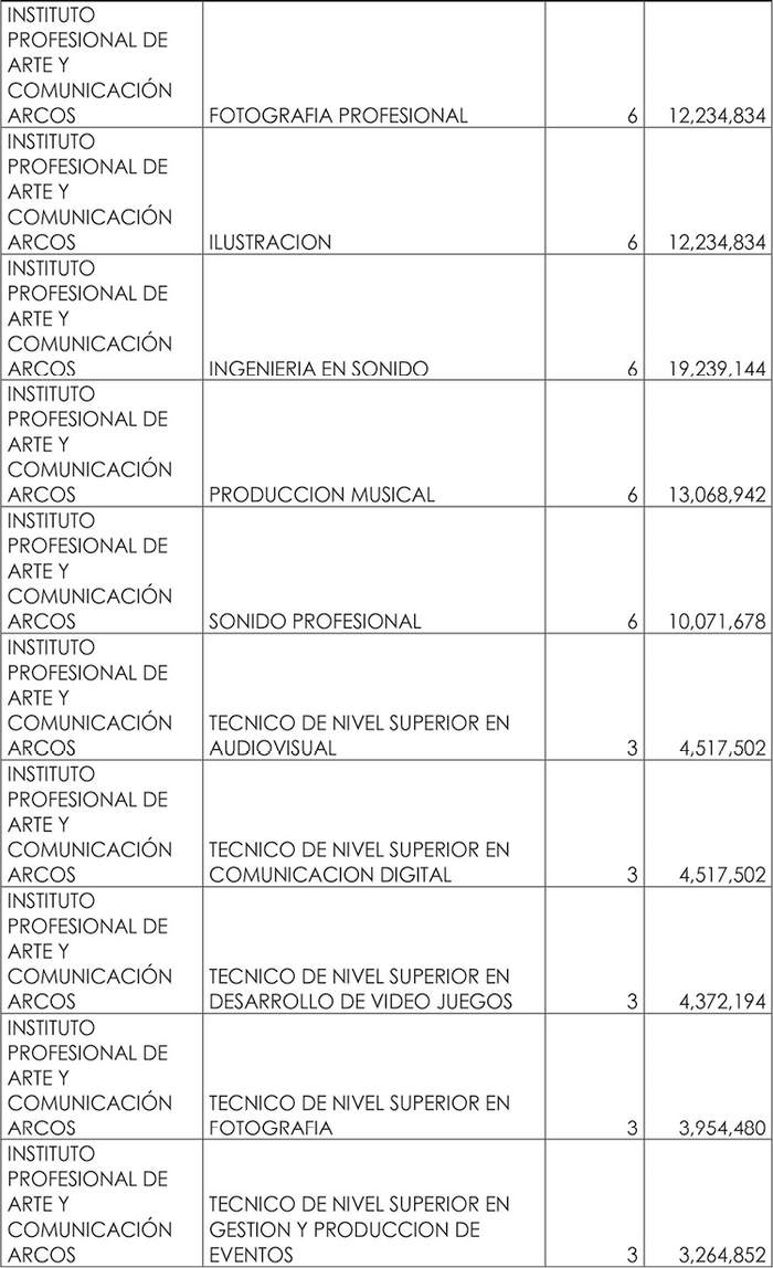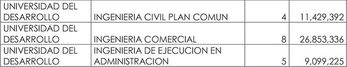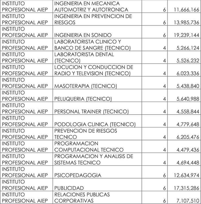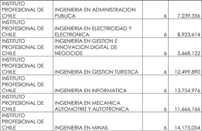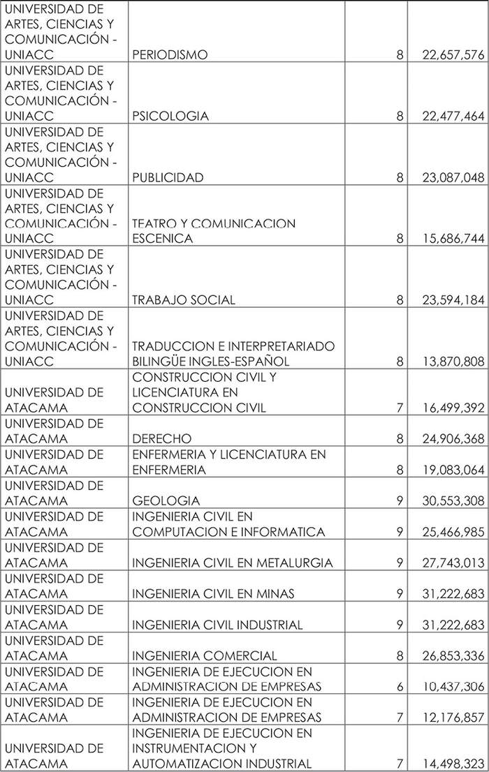 Artículo 4º.- Determínase, para efectos de lo dispuesto en el inciso tercero del artículo 4º de la ley Nº 20.027 y en el artículo 34º de su Reglamento, que el monto total garantizado por alumno no podrá exceder los valores que para cada institución superior y carrera se indican en la tabla siguiente, valores a los que se les agregará: