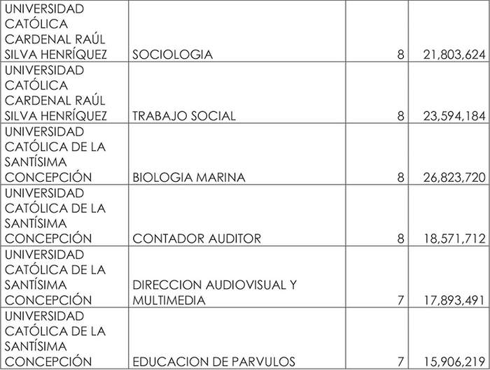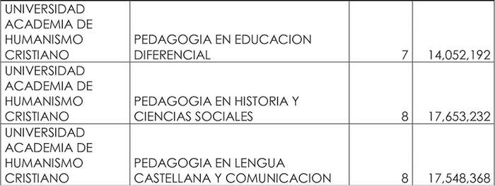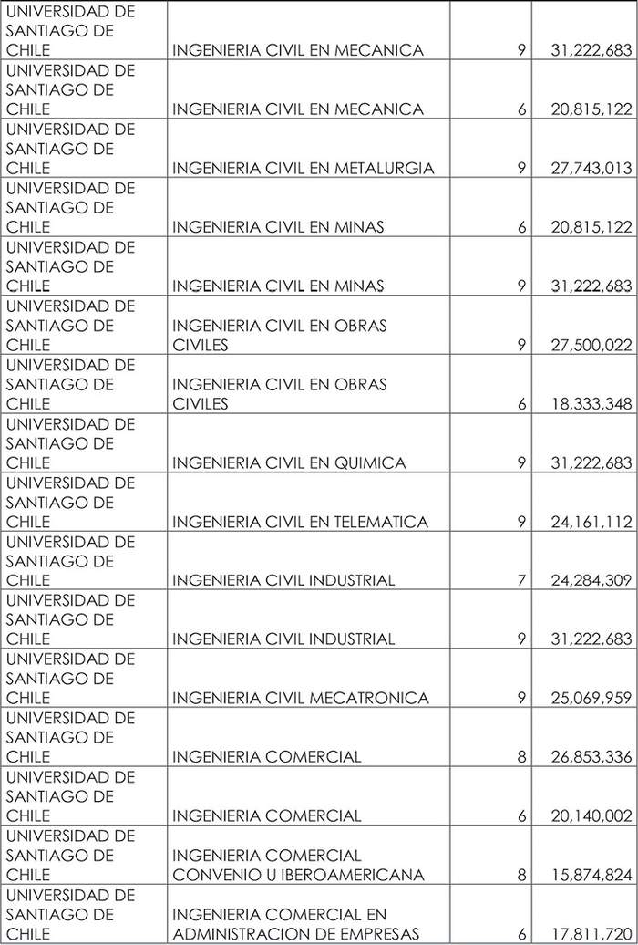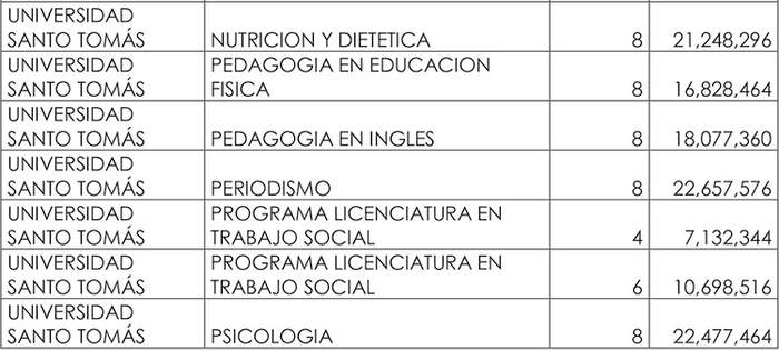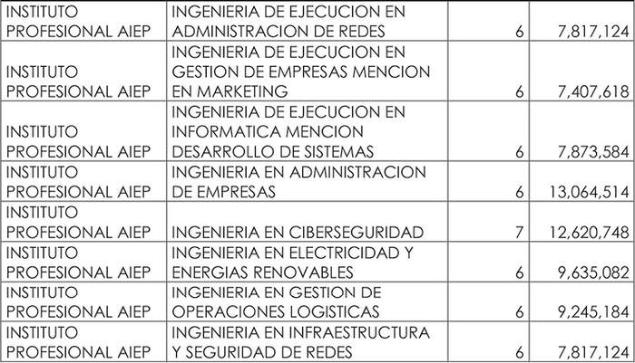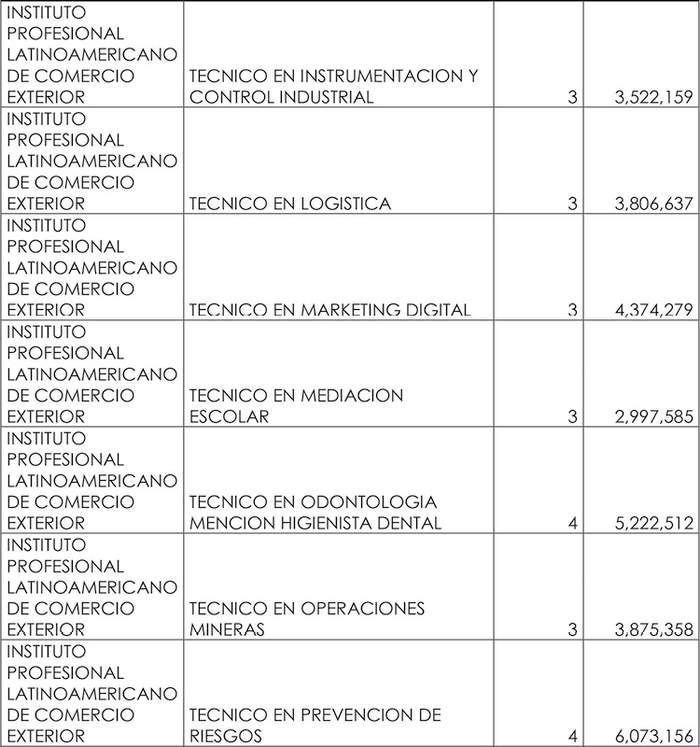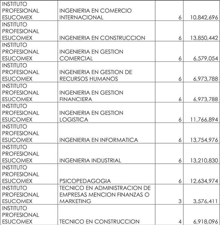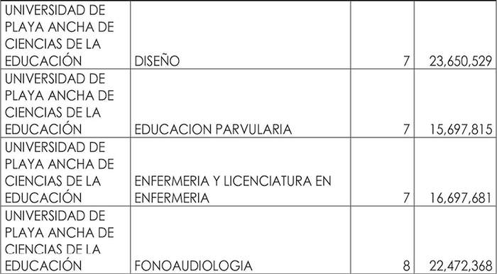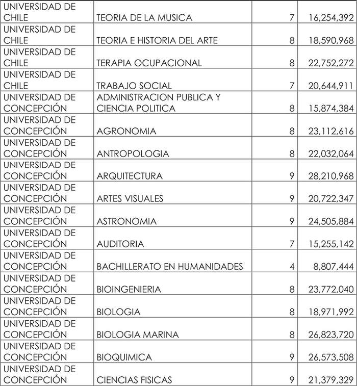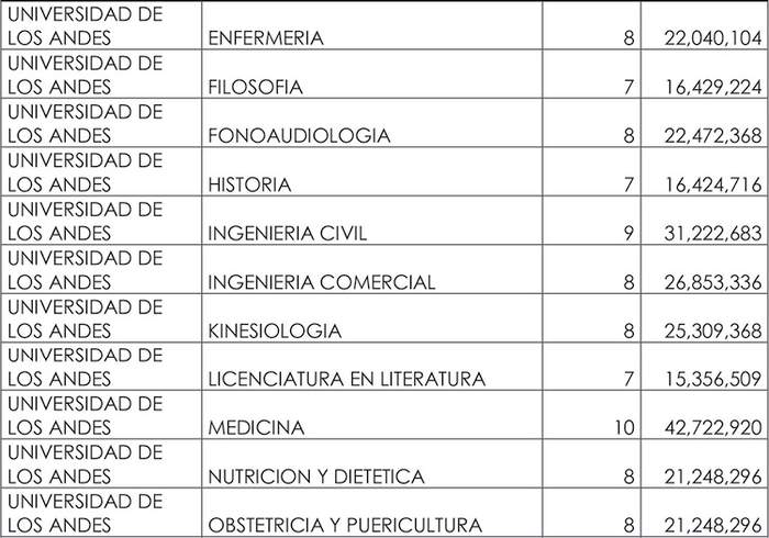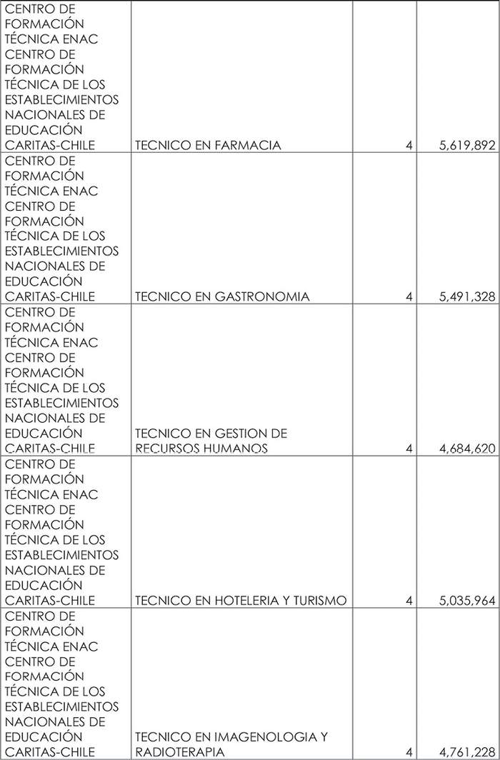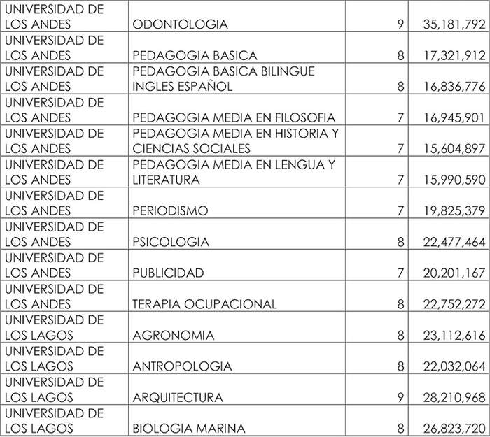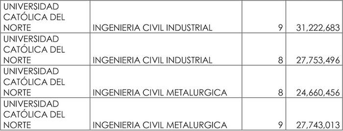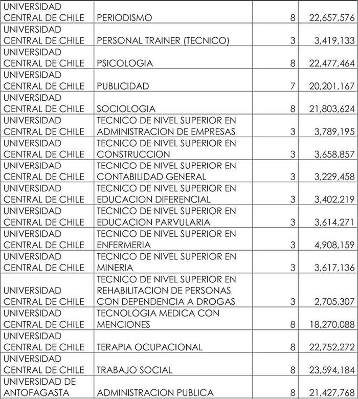 Artículo 4º.- Determínase, para efectos de lo dispuesto en el inciso tercero del artículo 4º de la ley Nº 20.027 y en el artículo 34º de su Reglamento, que el monto total garantizado por alumno no podrá exceder los valores que para cada institución superior y carrera se indican en la tabla siguiente, valores a los que se les agregará: