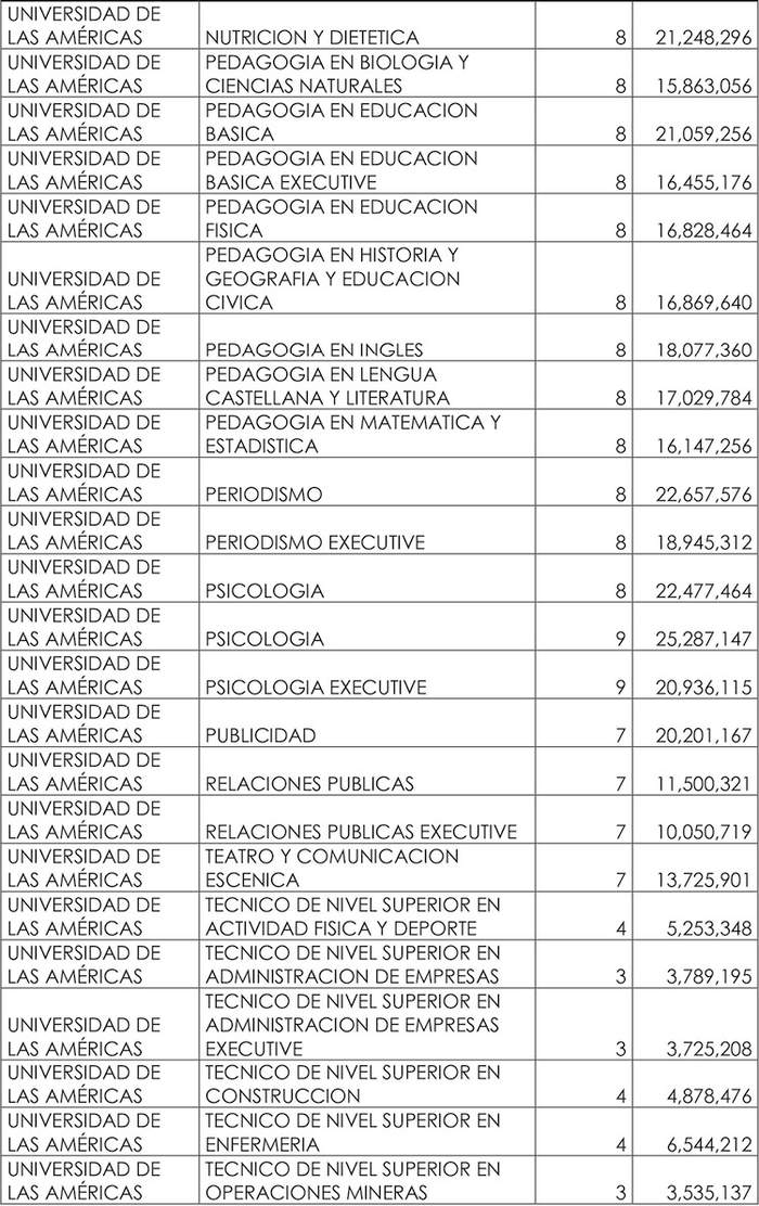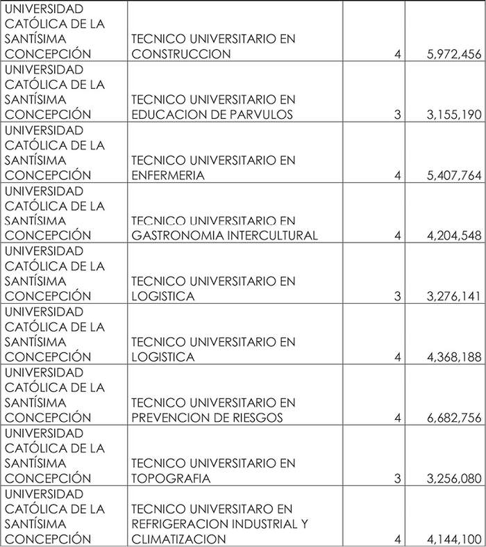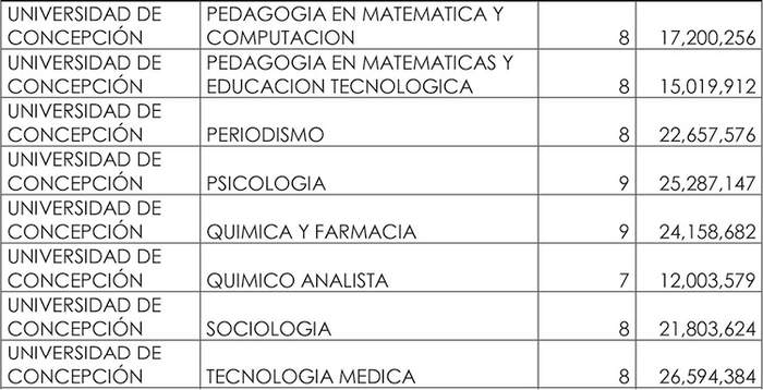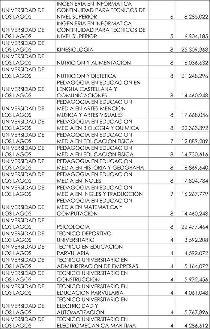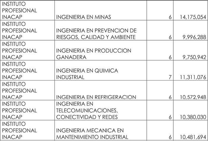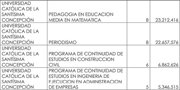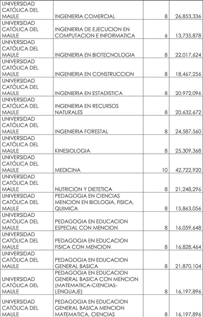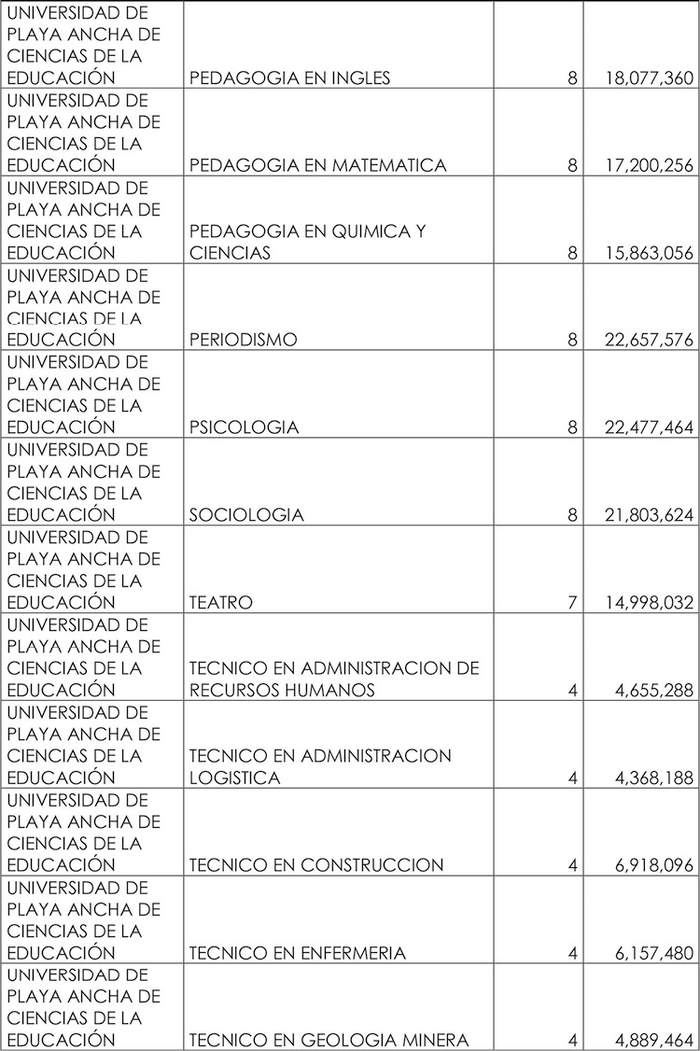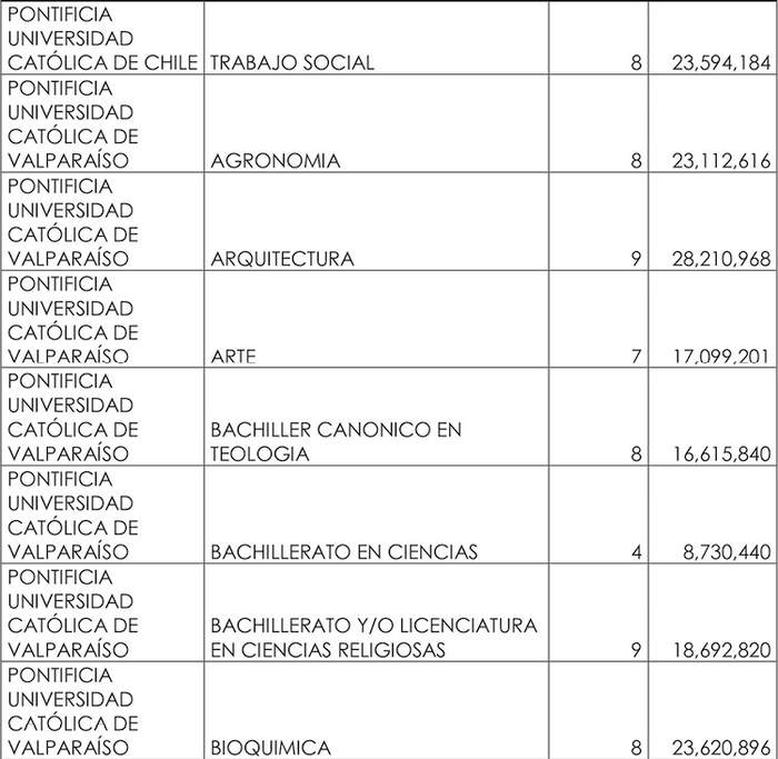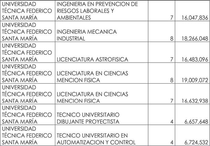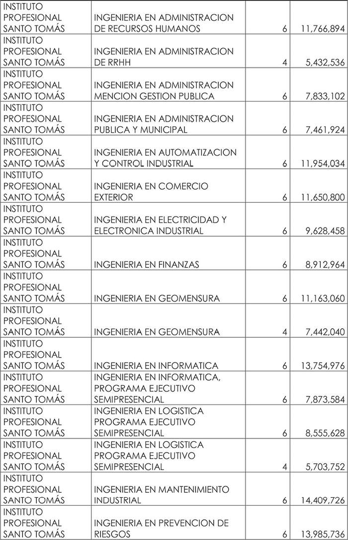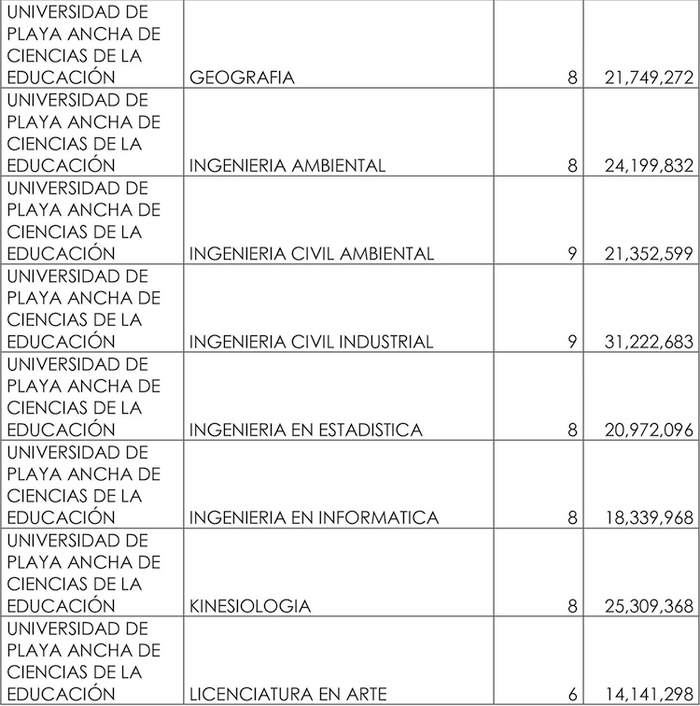 Artículo 4º.- Determínase, para efectos de lo dispuesto en el inciso tercero del artículo 4º de la ley Nº 20.027 y en el artículo 34º de su Reglamento, que el monto total garantizado por alumno no podrá exceder los valores que para cada institución superior y carrera se indican en la tabla siguiente, valores a los que se les agregará:
