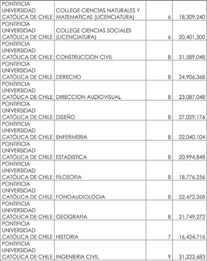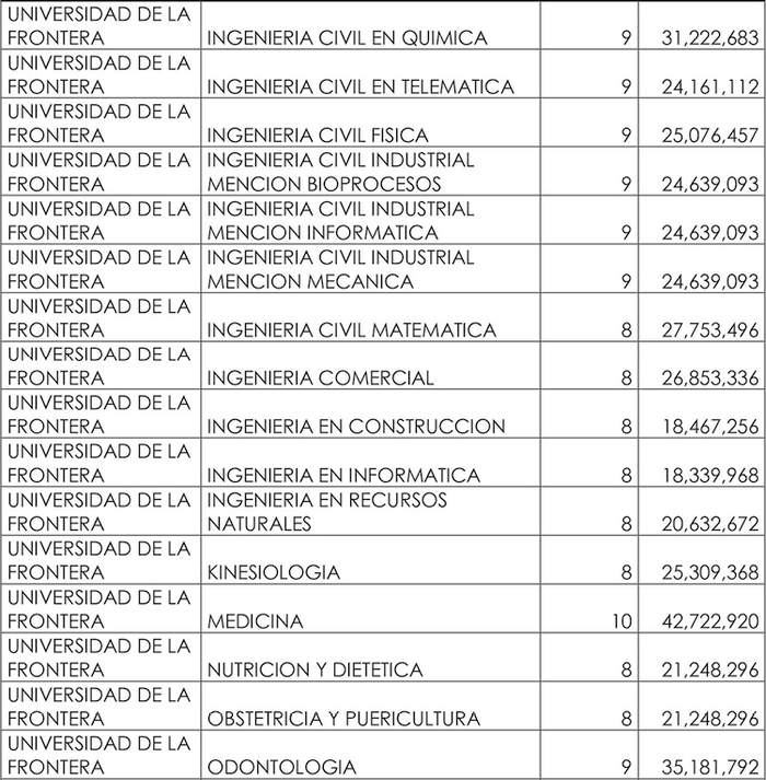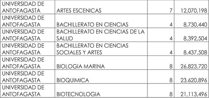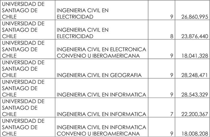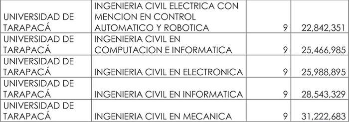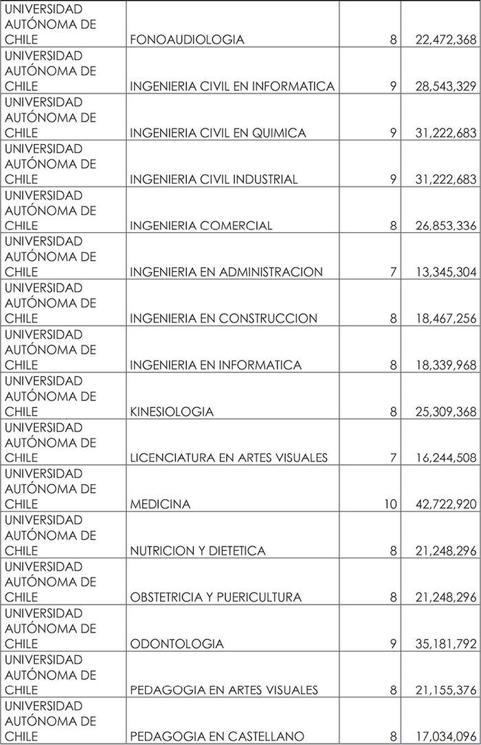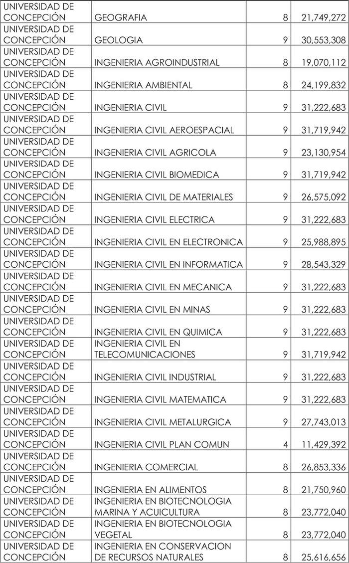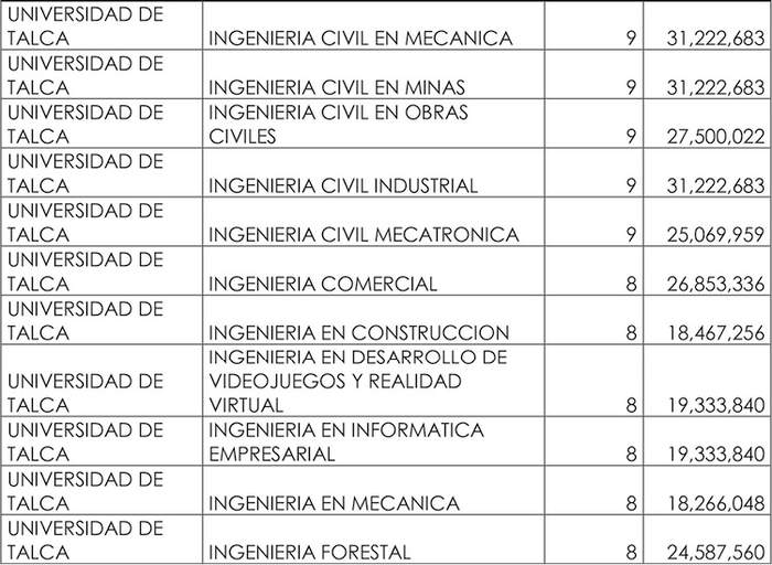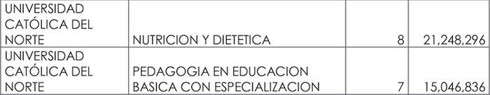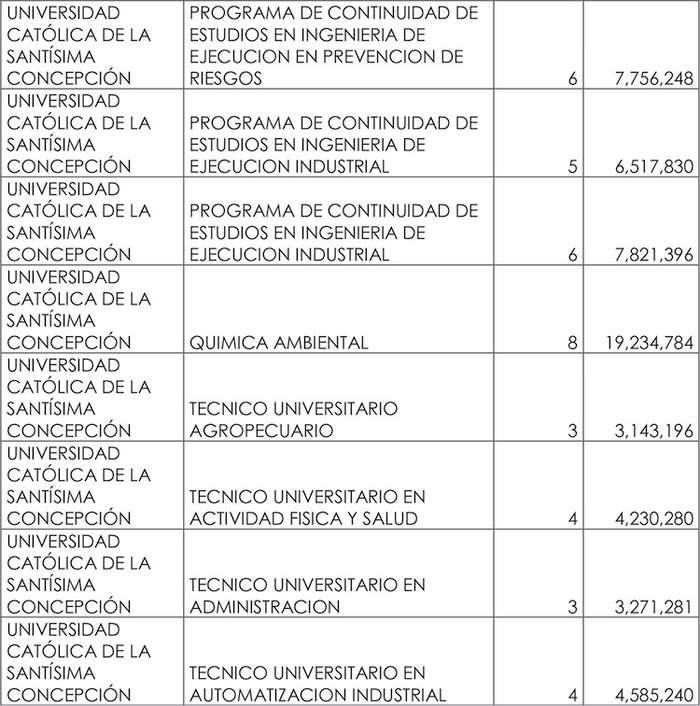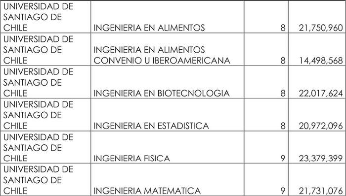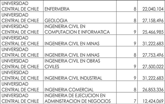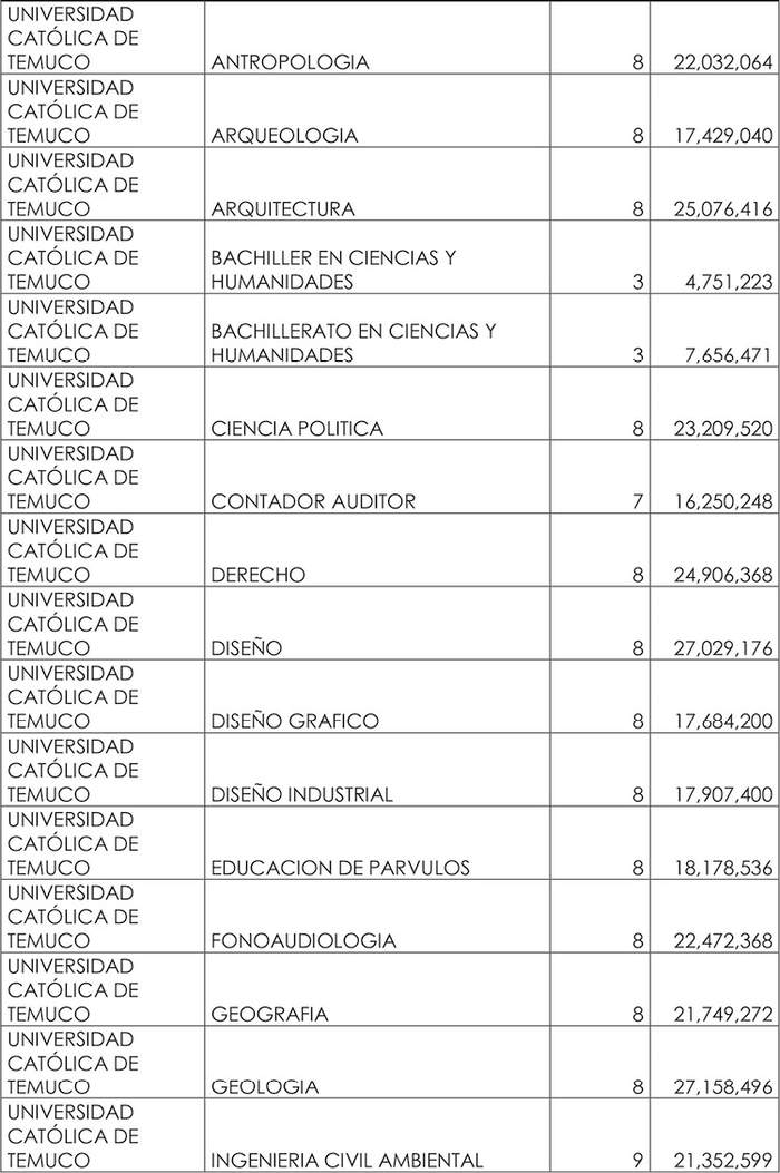 Artículo 4º.- Determínase, para efectos de lo dispuesto en el inciso tercero del artículo 4º de la ley Nº 20.027 y en el artículo 34º de su Reglamento, que el monto total garantizado por alumno no podrá exceder los valores que para cada institución superior y carrera se indican en la tabla siguiente, valores a los que se les agregará: