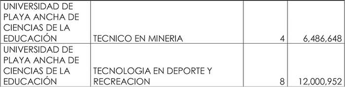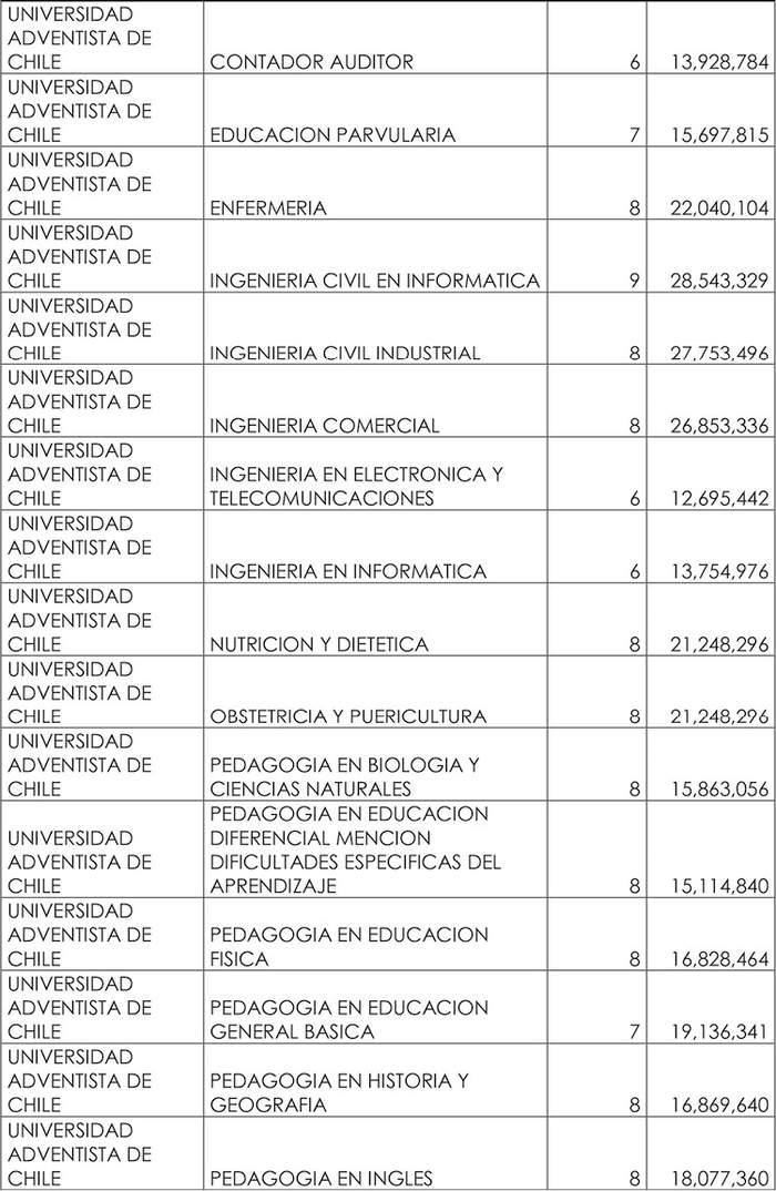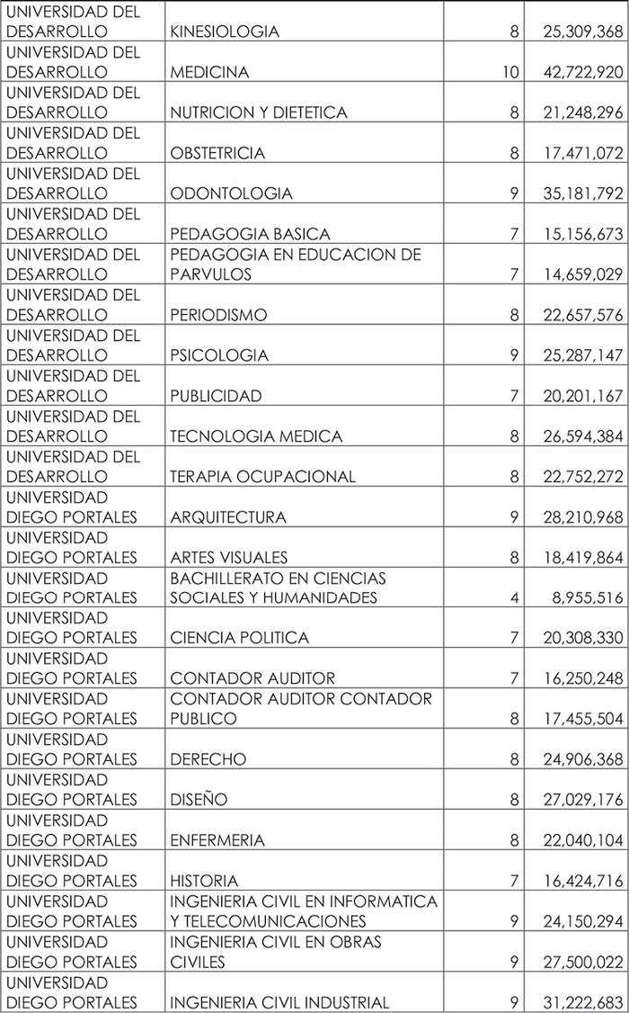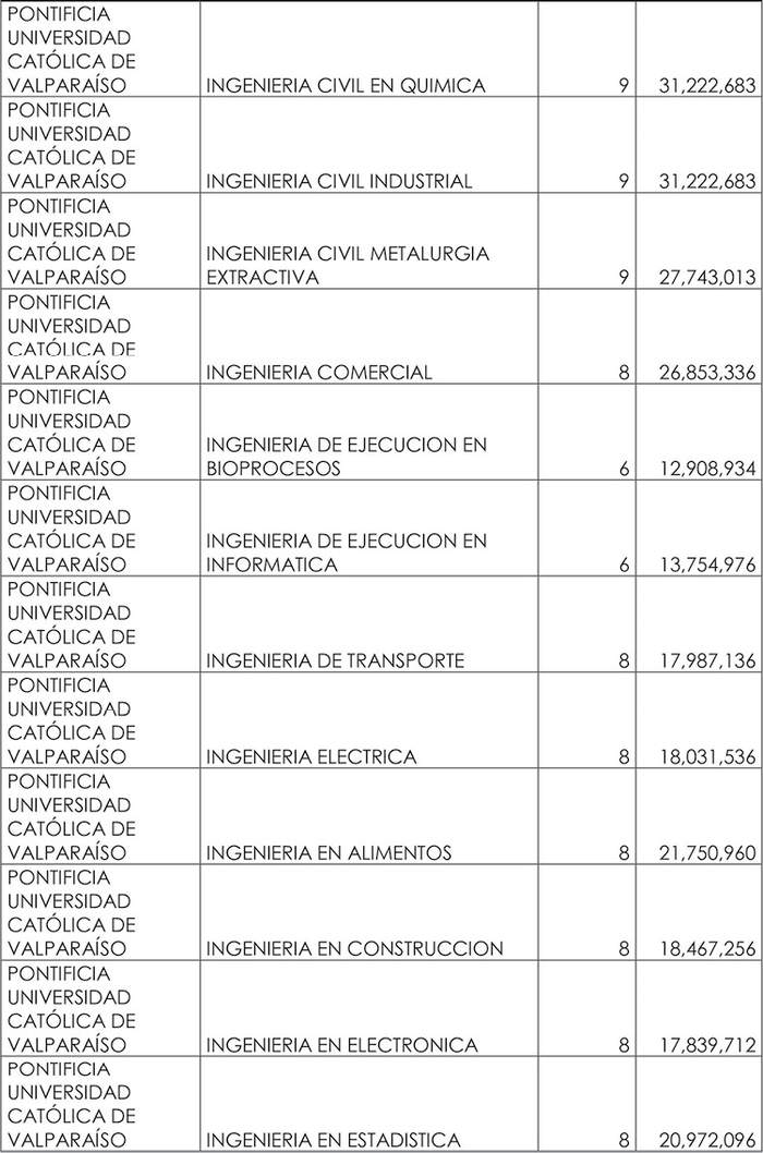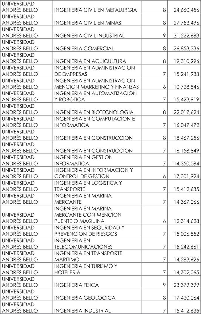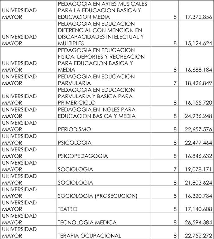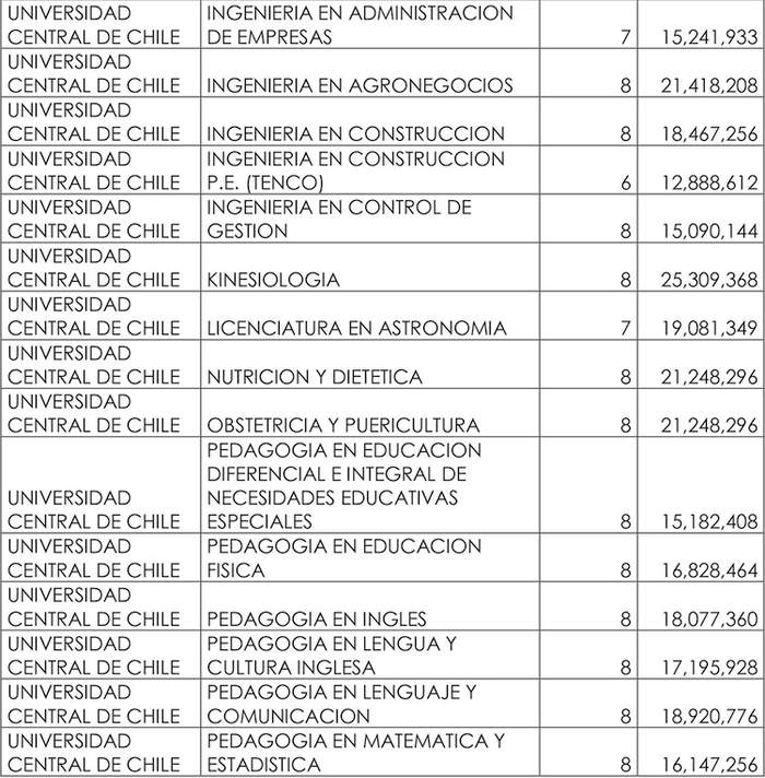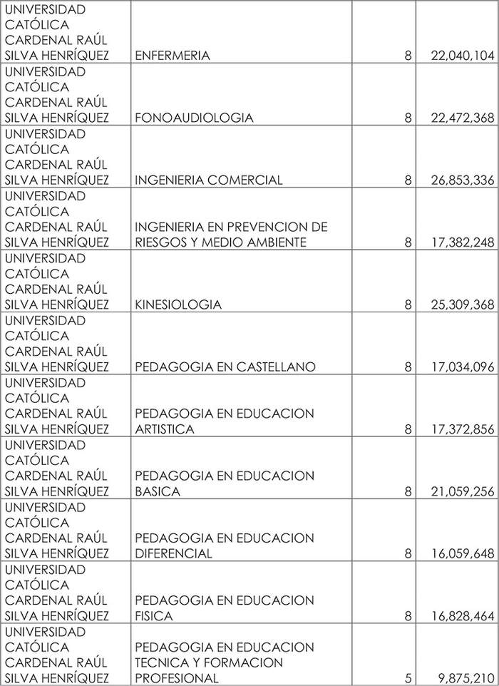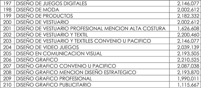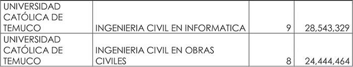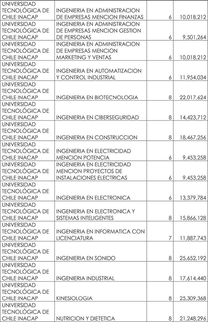 Artículo 4º.- Determínase, para efectos de lo dispuesto en el inciso tercero del artículo 4º de la ley Nº 20.027 y en el artículo 34º de su Reglamento, que el monto total garantizado por alumno no podrá exceder los valores que para cada institución superior y carrera se indican en la tabla siguiente, valores a los que se les agregará: