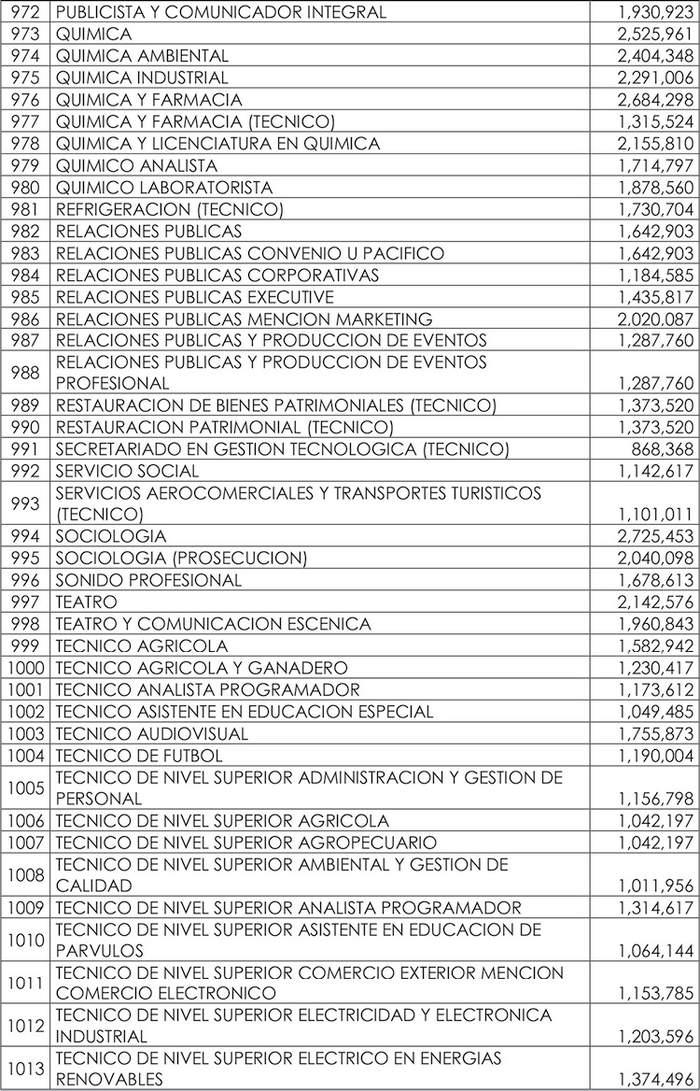 Que, en el caso de estudiantes matriculados como alumnos regulares en carreras conducentes a título profesional, el número de aranceles de referencia se aumentará en dos.