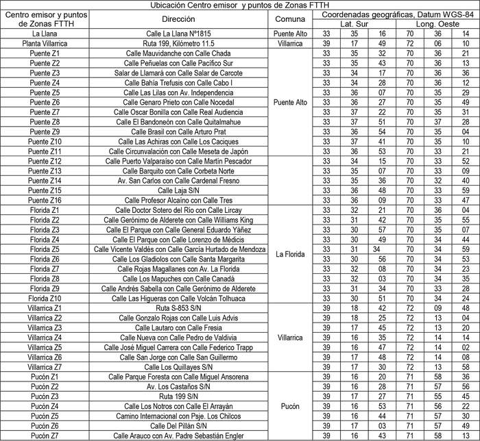3. La Zona de servicio comprende las comunas de Puente Alto y La Florida, de la Región Metropolitana de Santiago y las comunas de Villarrica y Pucón, de la Región de la Araucanía, respectivamente.