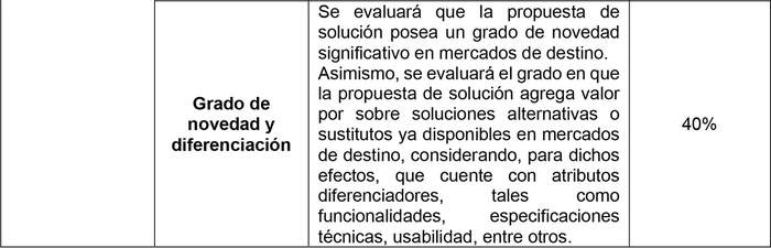 Se exceptúan de lo señalado en el párrafo precedente, aquellos proyectos que tengan por objetivo el escalamiento, validación y empaquetamiento de un producto (bien o servicio) y/o proceso, exclusivamente en mercados de destino internacionales, y que previamente, el mismo producto (bien o servicio) y/o proceso, haya sido cofinanciado únicamente respecto de mercados de destino nacionales.