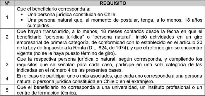 Además, al momento de la postulación, en relación con el beneficiario ("persona jurídica" o "persona natural"), se deberá cumplir con los siguientes requisitos: