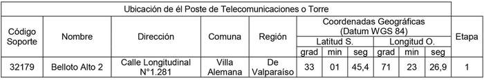 1. Autorízase a la concesionaria para instalar, operar y explotar una (1) torre de telecomunicaciones, destinada a soportar sistemas radiantes, según se indica a continuación: