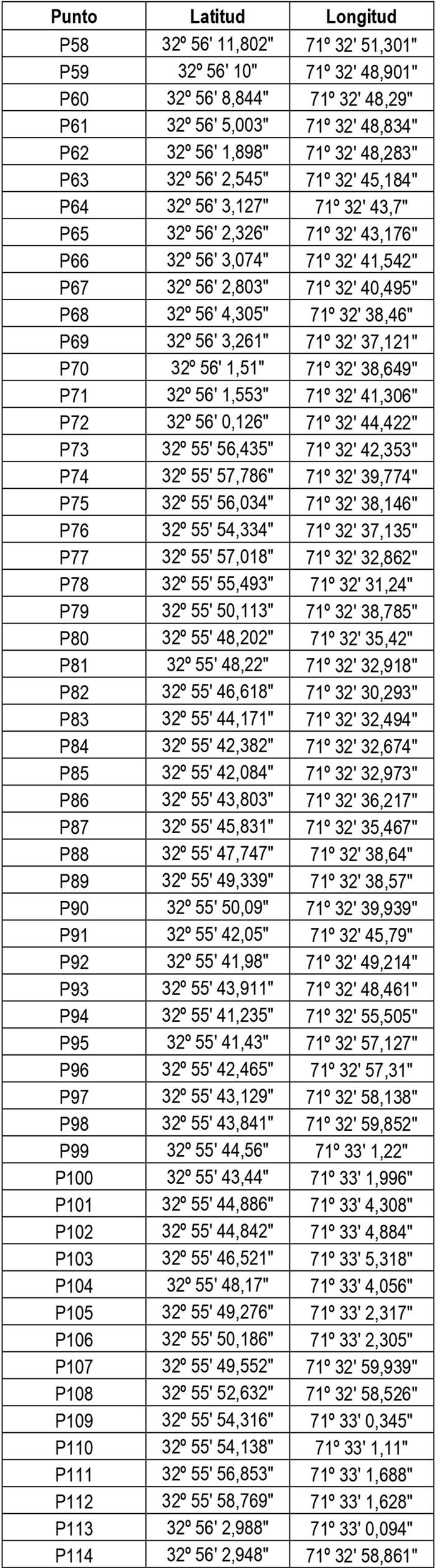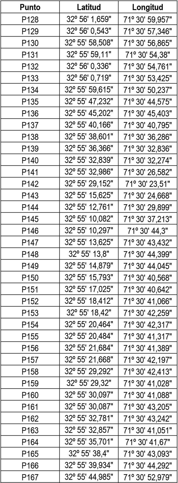 1. Autorízase a la concesionaria a modificar su concesión en el sentido de ampliar su zona de servicio a la comuna de Concón, Región de Valparaíso, con el objeto de incorporar los siguientes puntos geográficos (Datum WGS84), conformado por la unión circundada de ellos, incluyendo las edificaciones de sus respectivos costados exteriores: