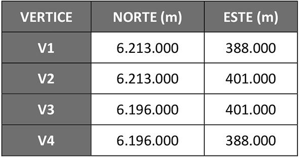 1. Que, con fecha 29 de noviembre de 2021, en virtud del artículo 10 de la ley Nº 19.657, sobre concesiones de energía geotérmica, la empresa Transmark Chile SpA, en adelante e indistintamente la "empresa", presentó ante esta Secretaría de Estado una solicitud de concesión de exploración de energía geotérmica denominada "Cachapoal'', ubicada en la Región del Libertador General Bernardo O'Higgins, provincia de Cachapoal, comuna de Machalí, sobre una superficie de 22.100 hectáreas, cuya área geográfica se encuentra delimitada por el paralelogramo rectangular de vértices V1, V2, V3 y V4, cuyas coordenadas UTM, referidas al Datum Sirgas (WGS84), Huso 19 Sur, respectivamente, son la siguientes: