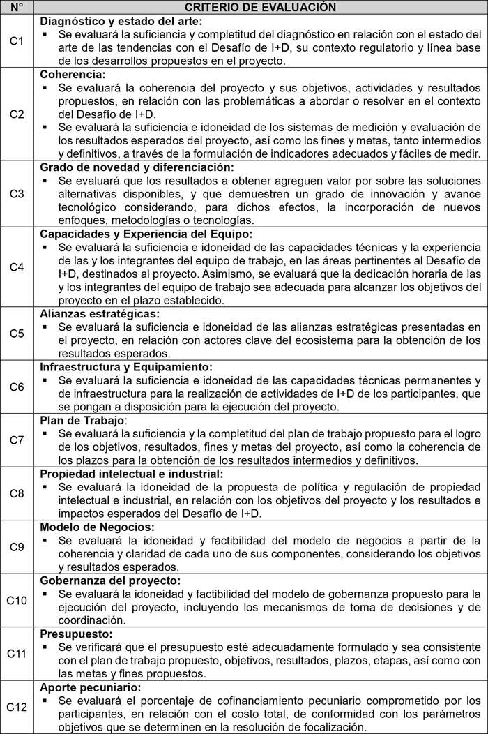 En cada resolución de focalización, Corfo determinará los objetivos específicos y los resultados esperados del o de los Desafíos de I+D a abordar por los proyectos presentados a cada convocatoria.