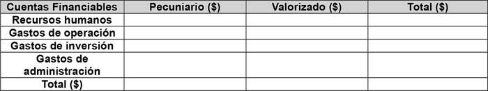 Los participantes deberán contribuir al financiamiento restante, mediante aportes "pecuniarios" y/o "valorizados", según las siguientes definiciones: