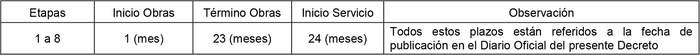 2. Los plazos serán los que se indican a continuación: