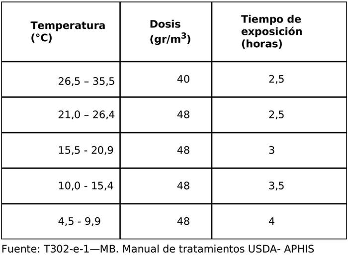 1.2 Se aceptarán como tratamientos de fumigación las siguientes alternativas: