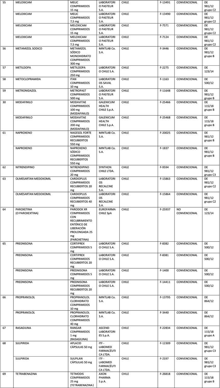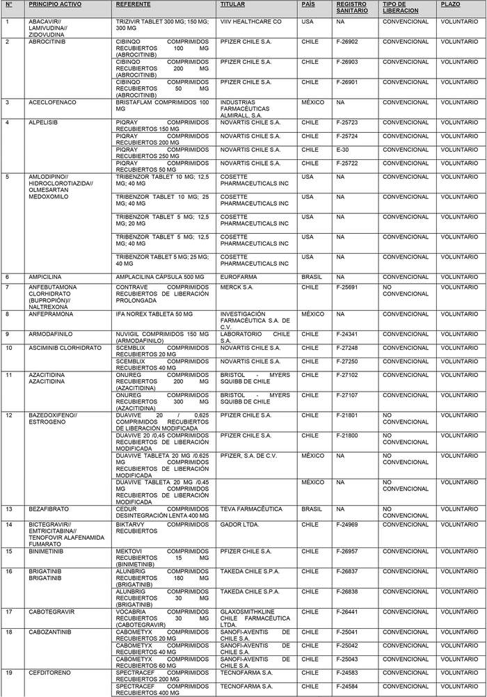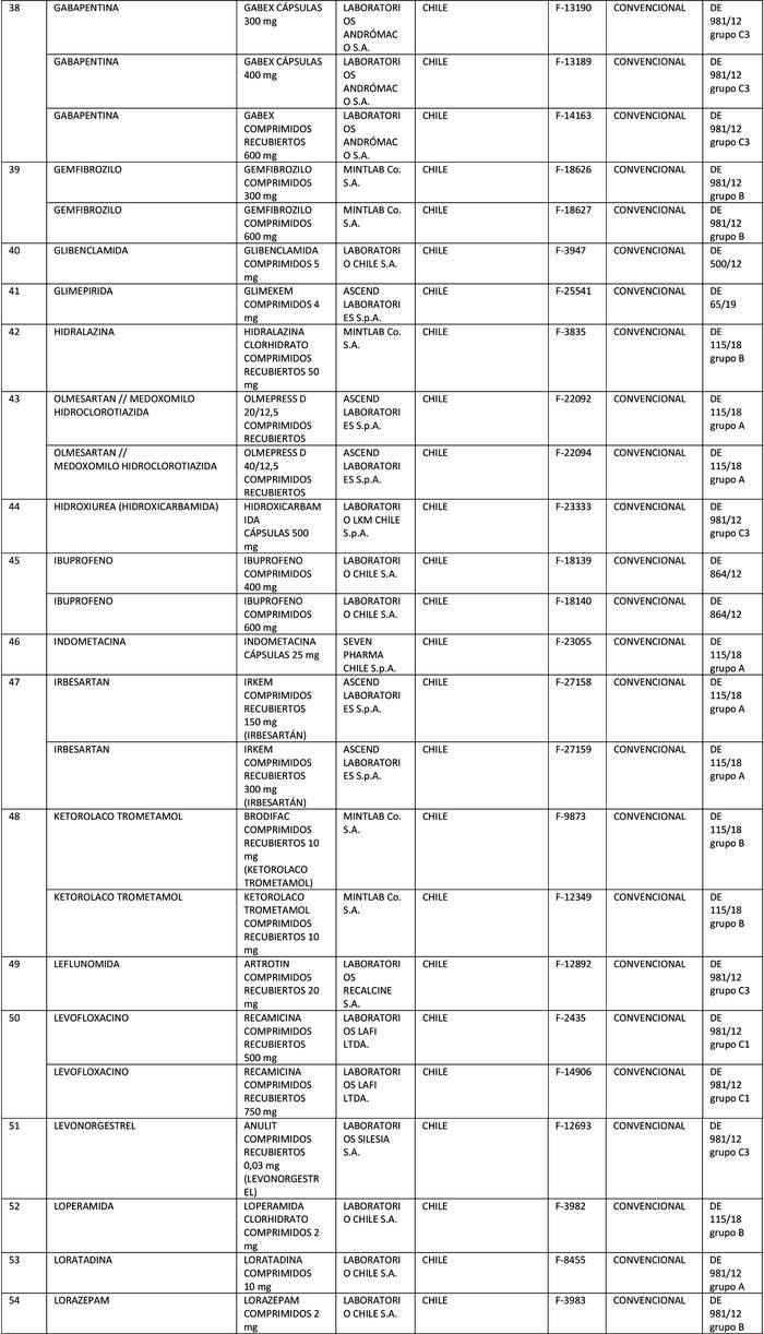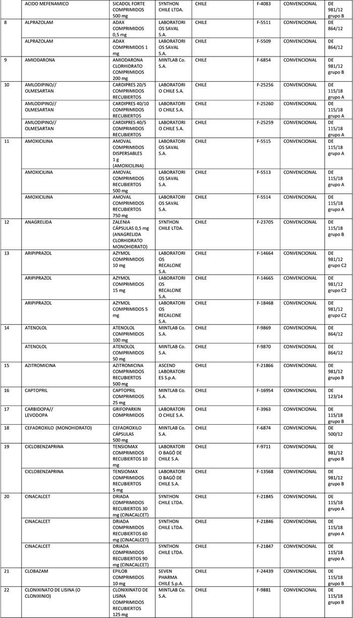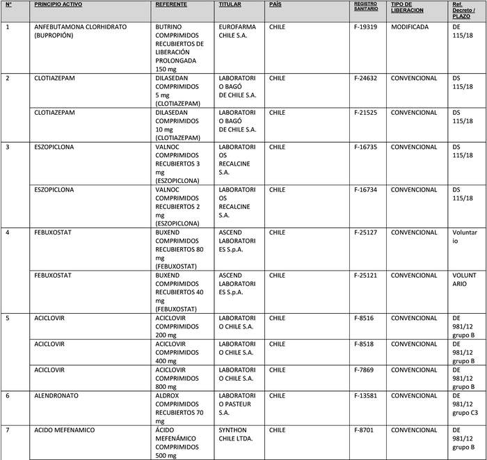 b) Actualícese la "Lista de Productos que sin perder su condición de Bioequivalente en Chile, podrán ser empleados como productos de referencia para los estudios de Equivalencia Terapéutica", en la forma que se indica a continuación: