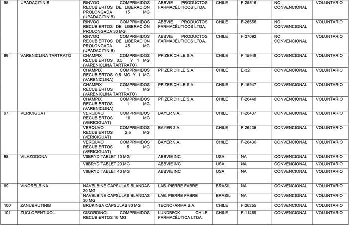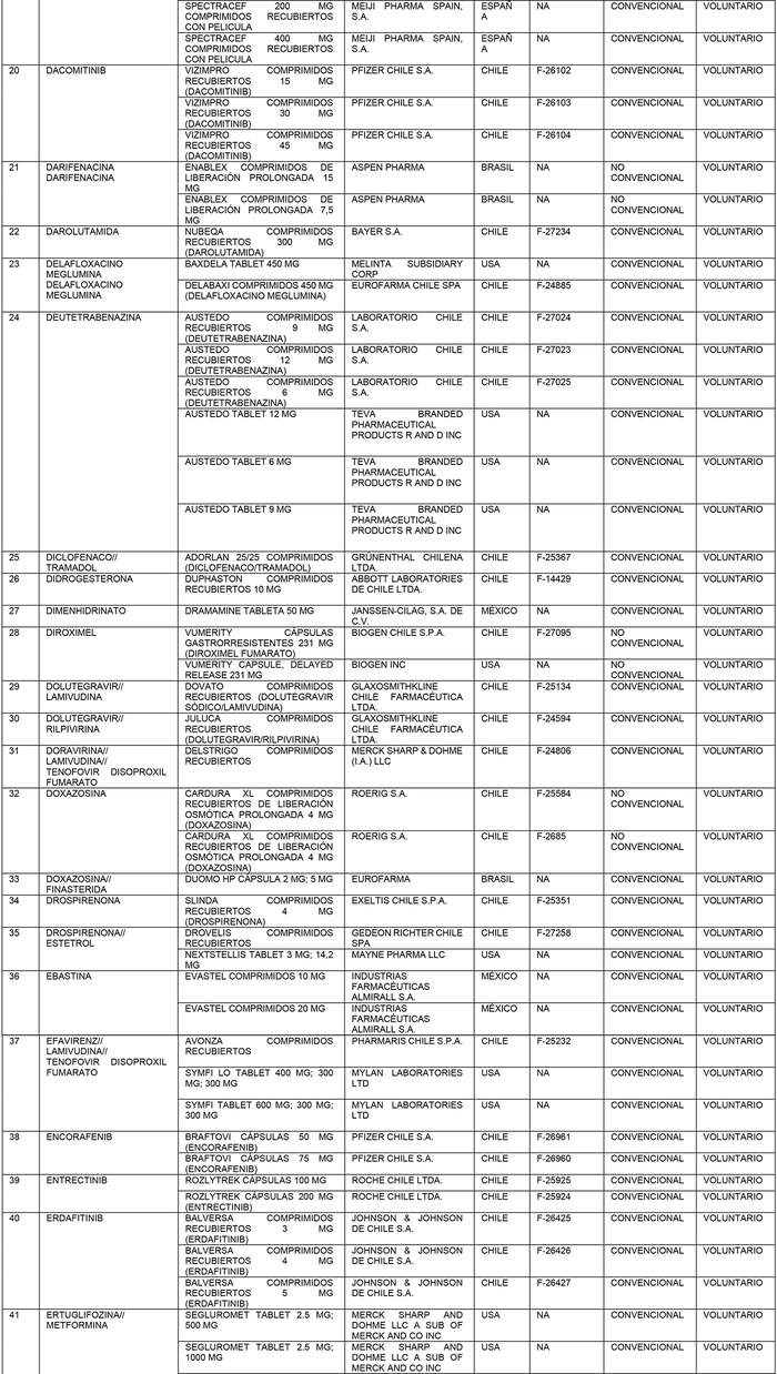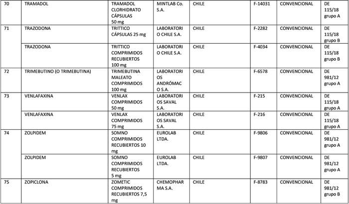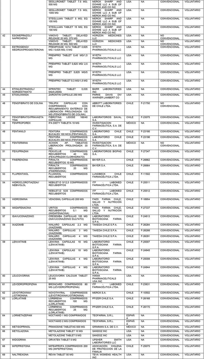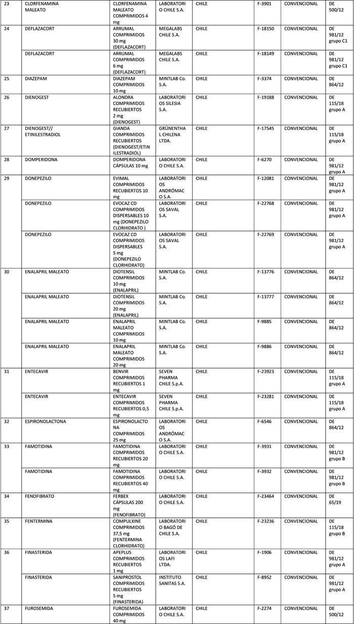 b) Actualícese la "Lista de Productos que sin perder su condición de Bioequivalente en Chile, podrán ser empleados como productos de referencia para los estudios de Equivalencia Terapéutica", en la forma que se indica a continuación: