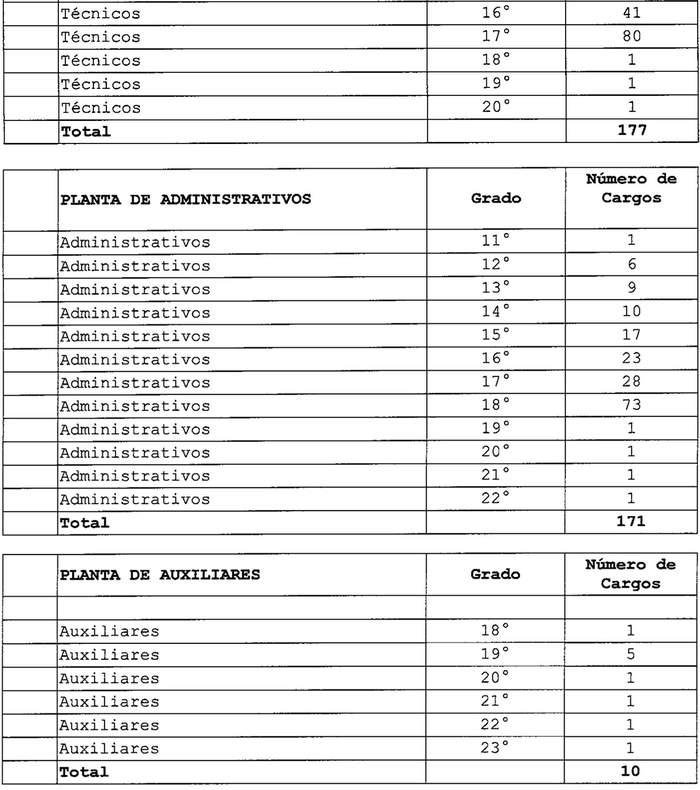 a. Cargos a proveer, con indicación de su grado y número de cargos.