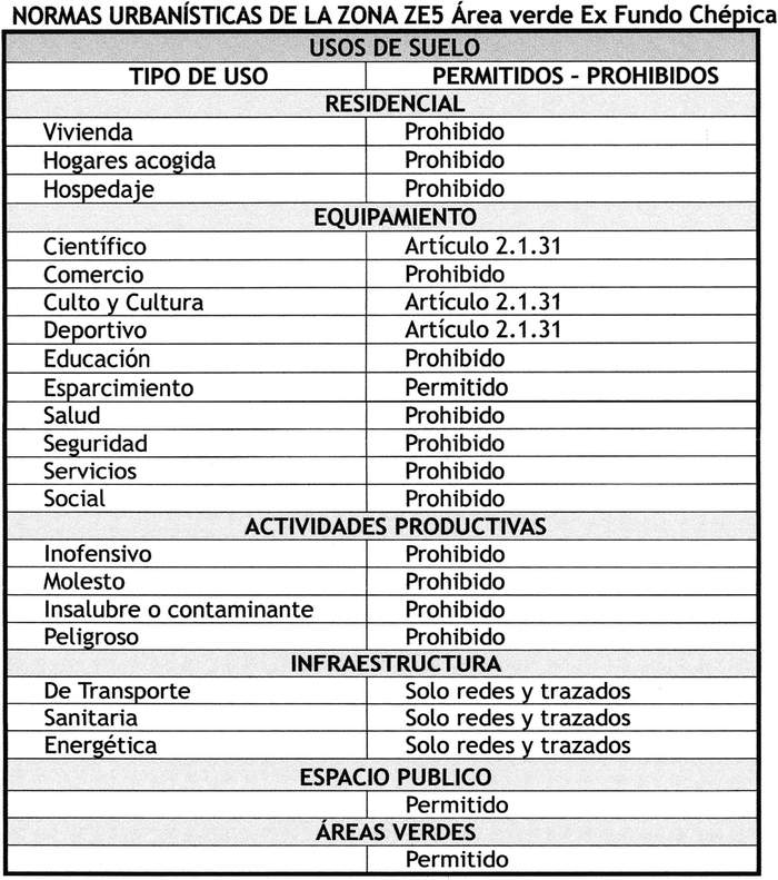 "Zona ZE5 Área Verde ex Fundo Chépica
