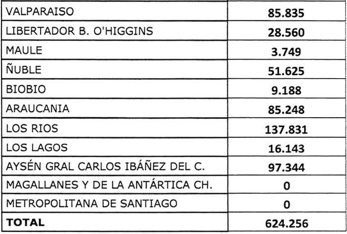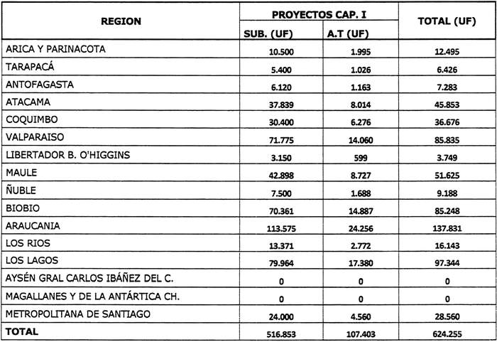 3. Los recursos indicados en el resuelvo precedente se destinarán al financiamiento de los subsidios y al pago de los servicios de Asistencia Técnica, según la distribución por región señalada en el siguiente cuadro: