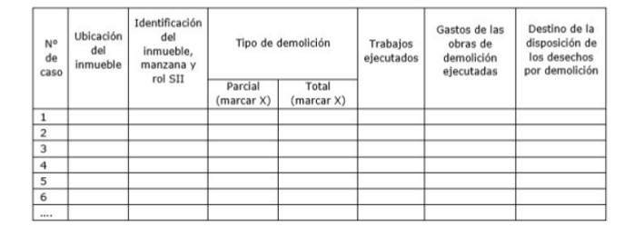 10. Que, un acta puede contener la información de demoliciones parciales o totales, efectuadas en uno o más inmuebles, villas, poblaciones, sectores o localidades afectados por los incendios forestales.