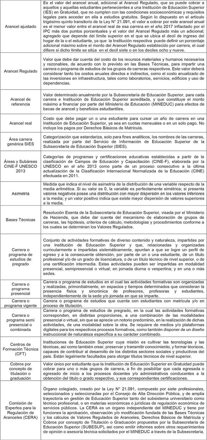 CERA (Comisión de Expertos para la Regulación de Aranceles) (2024, 5 de enero). Informe con observaciones sobre el documento titulado "Bases Técnicas para la determinación de Valores Regulados de Aranceles, Derechos Básicos de Matrícula y cobros por concepto de Titulación o Graduación, en Instituciones de Educación Superior adscritas al Financiamiento Institucional para la Gratuidad".