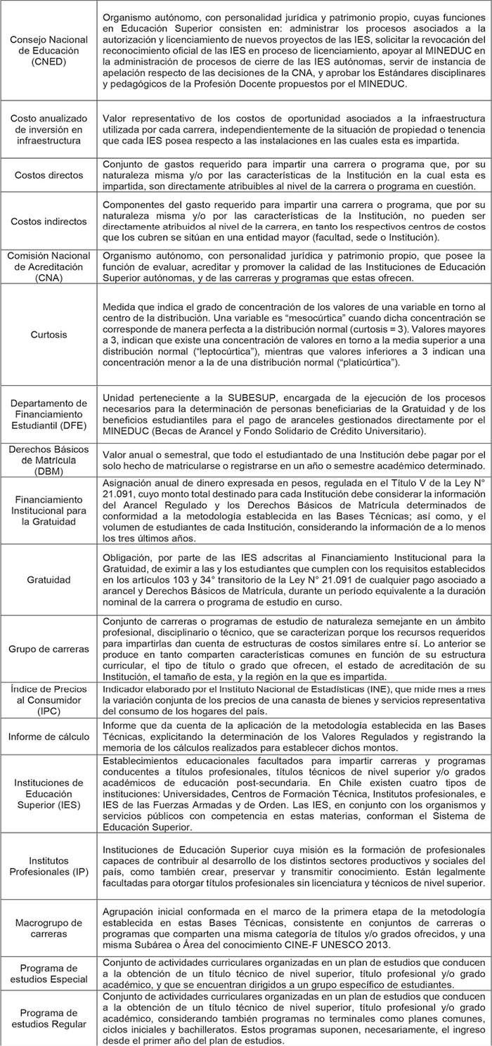Bases Técnicas para la determinación de Valores Regulados de Aranceles, Derechos Básicos de Matrícula y Cobros por concepto de Titulación o Graduación, en Instituciones de Educación Superior adscritas al Financiamiento Institucional para la Gratuidad, año académico 2025