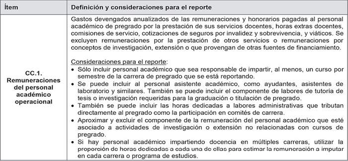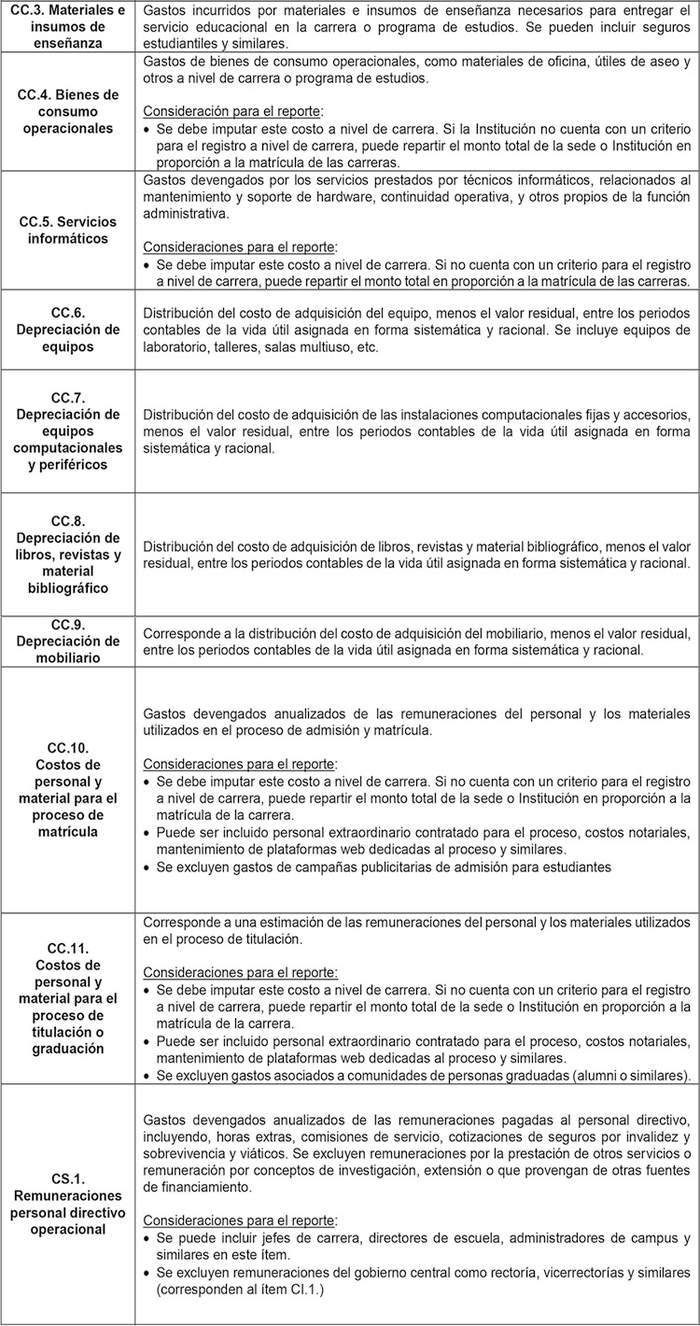La definición deberá considerar consultas a las Instituciones; a la Contraloría General de la República (CGR); a la Superintendencia de Educación Superior (SES); y a la CERA. Dichas consultas se llevarán a cabo con anterioridad al próximo levantamiento de información de costos de carreras y programas.