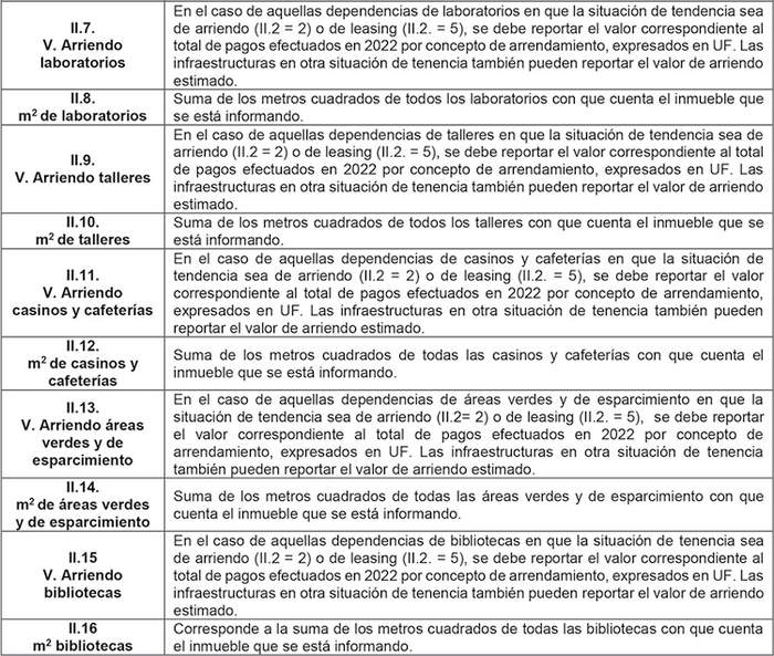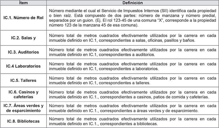 b) Estimación de costos de infraestructura: la Comisión compartió que la utilización de un criterio unificado no es factible para el actual proceso, dada la heterogeneidad que exhiben las Instituciones de Educación Superior en cuanto a su metodología de valoración contable de la infraestructura. Subraya, no obstante, la necesidad de que el proceso futuro de regulación a implementar a partir del año académico 2026 incorpore nuevas fuentes de información, tanto de instituciones públicas como privadas, que permitan obtener estimaciones más robustas del costo en que incurren las instituciones por la utilización de la infraestructura respectiva.