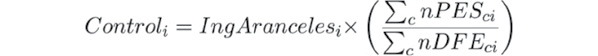 Ecuación 1 - Ajuste a variable de control de ingresos por aranceles