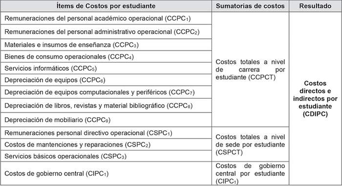 Ecuación 6 - Ítems de costos de carrera por estudiante