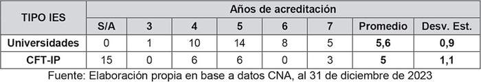 Tabla 9 - Años de acreditación IES adscritas a Gratuidad en 2024