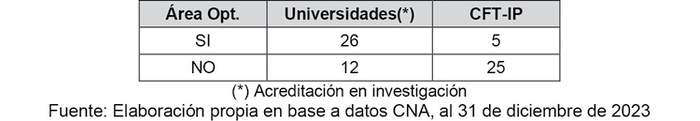 Tabla 10 - Acreditación en investigación/área optativa de IES adscritas a Gratuidad en 2024